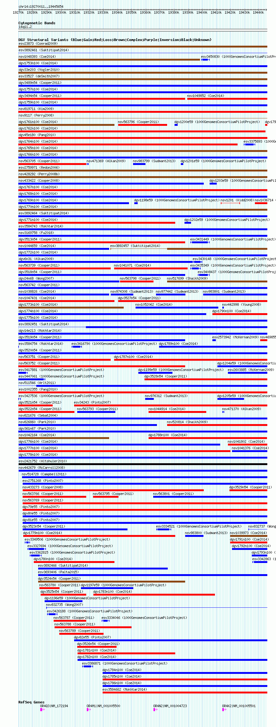 Variant DetailsVariant: nsv1036244| Internal ID | 19125463 | | Landmark | | | Location Information | | | Cytoband | 14q11.2 | | Allele length | | Assembly | Allele length | | hg38 | 175644 | | hg19 | 175644 | | hg18 | 175644 |