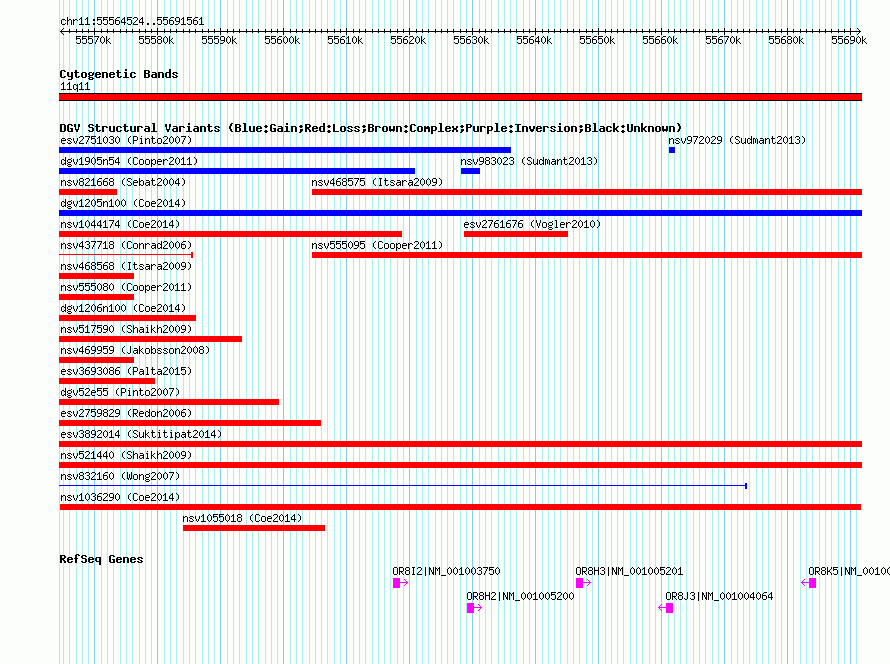 Variant DetailsVariant: nsv1036290| Internal ID | 19125509 | | Landmark | | | Location Information | | | Cytoband | 11q11 | | Allele length | | Assembly | Allele length | | hg38 | 127038 | | hg19 | 127038 | | hg18 | 127038 |