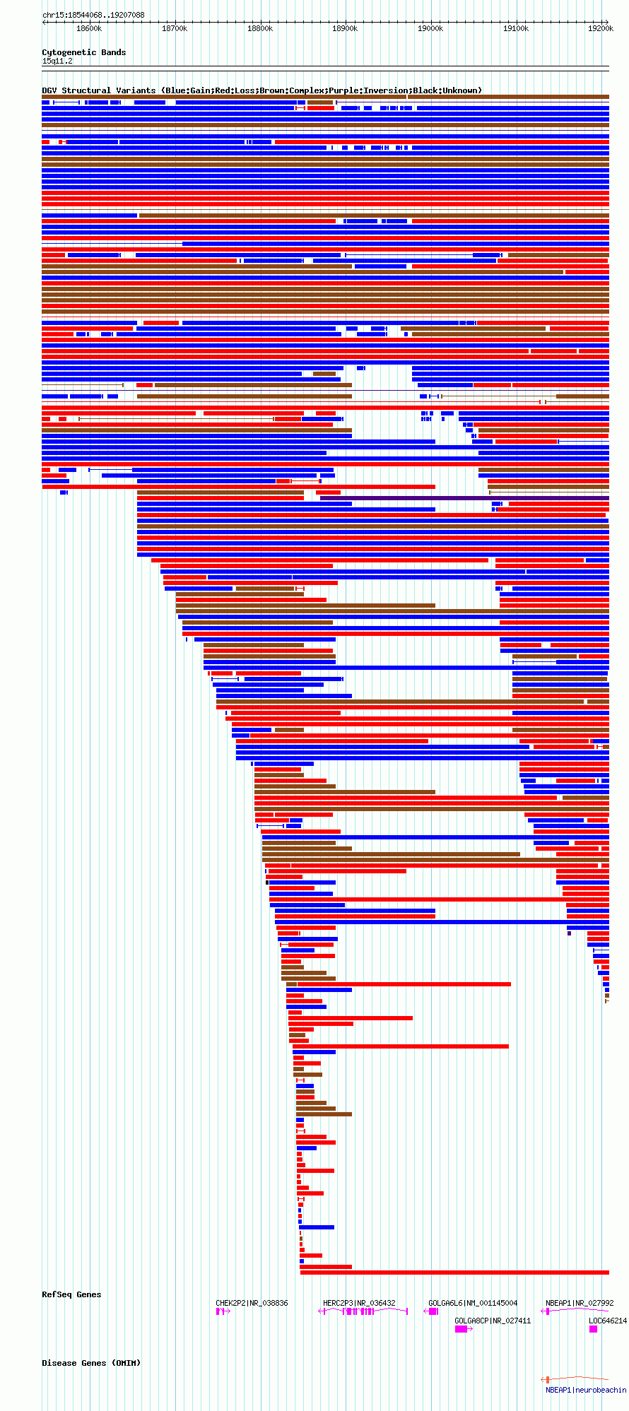 Variant DetailsVariant: nsv1036665| Internal ID | 19125884 | | Landmark | | | Location Information | | | Cytoband | 15q11.1 | | Allele length | | Assembly | Allele length | | hg38 | 662949 | | hg19 | 663025 | | hg18 | 663021 |