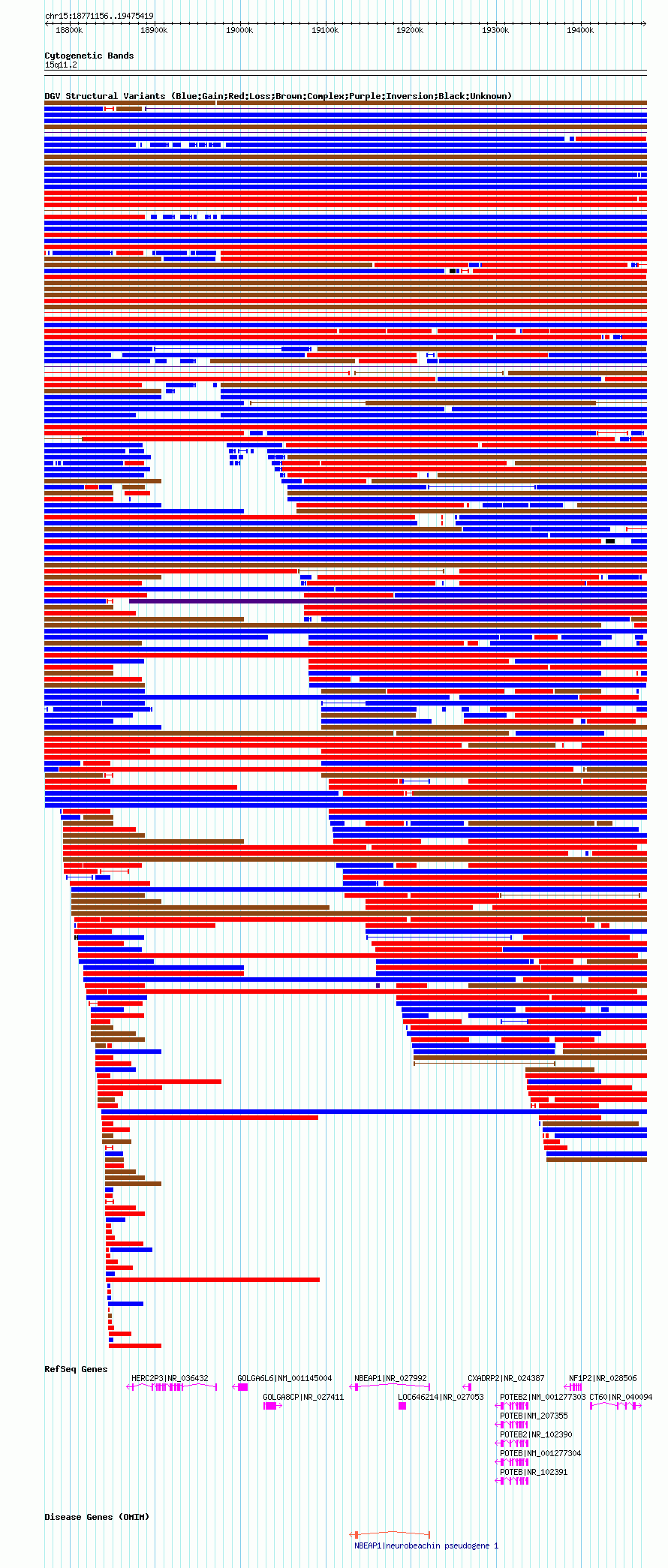 Variant DetailsVariant: nsv1037004| Internal ID | 19126223 | | Landmark | | | Location Information | | | Cytoband | 15q11.1 | | Allele length | | Assembly | Allele length | | hg38 | 699543 | | hg19 | 699619 | | hg18 | 704264 |