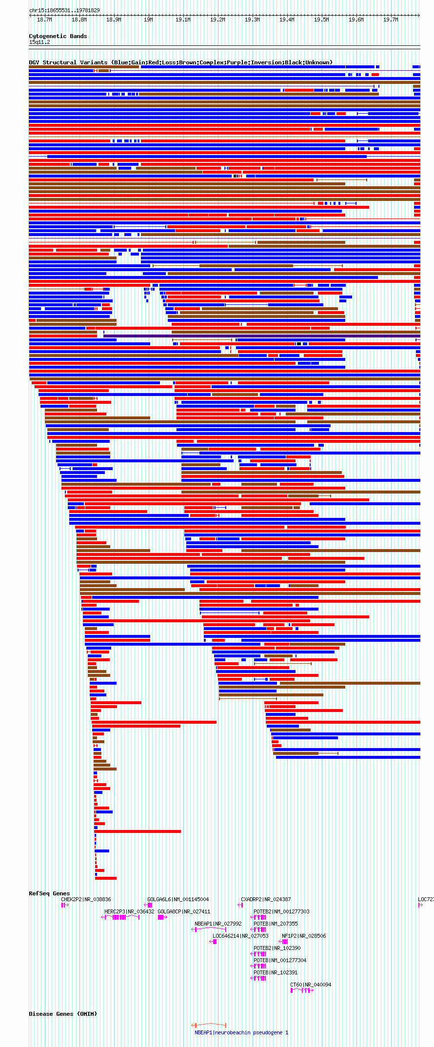 Variant DetailsVariant: nsv1037071| Internal ID | 19126290 | | Landmark | | | Location Information | | | Cytoband | 15q11.1 | | Allele length | | Assembly | Allele length | | hg38 | 1802251 | | hg19 | 1884949 | | hg18 | 1126299 |