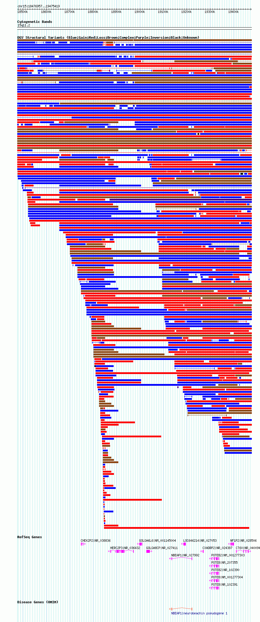 Variant DetailsVariant: nsv1037241| Internal ID | 19126460 | | Landmark | | | Location Information | | | Cytoband | 15q11.1 | | Allele length | | Assembly | Allele length | | hg38 | 993742 | | hg19 | 993818 | | hg18 | 998463 |