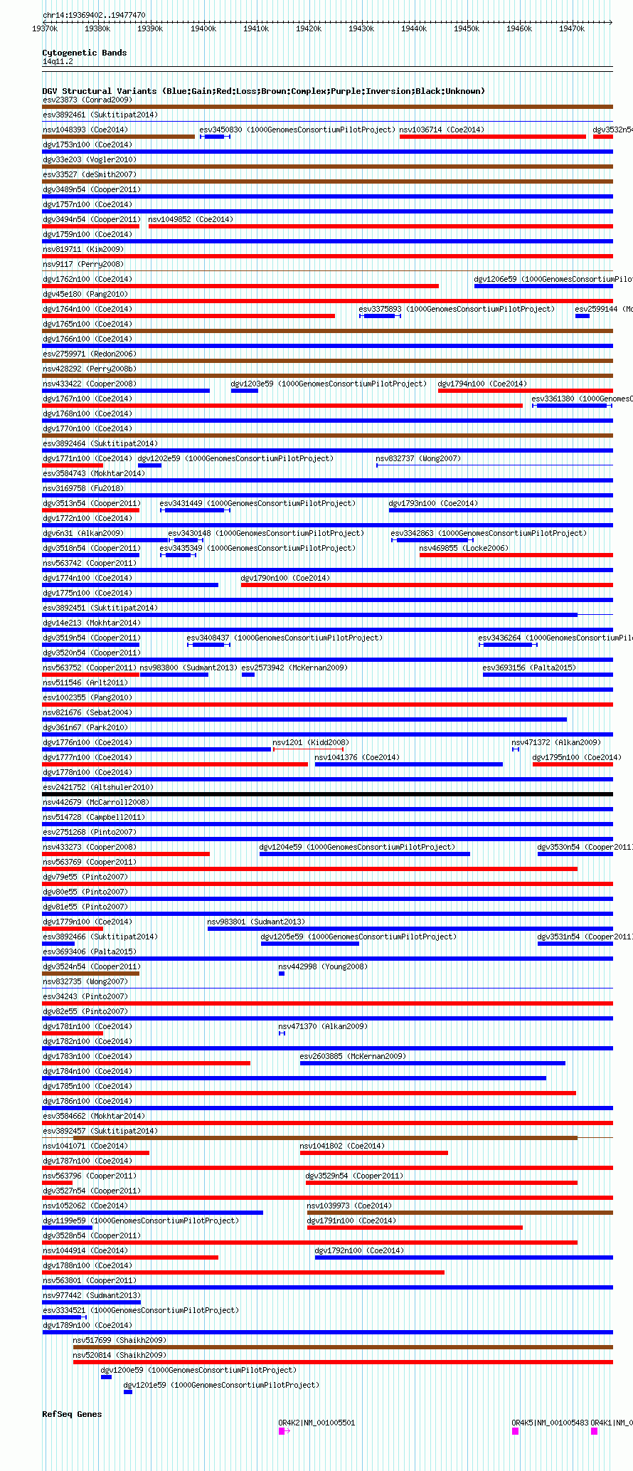 Variant DetailsVariant: nsv1037265| Internal ID | 19126484 | | Landmark | | | Location Information | | | Cytoband | 14q11.2 | | Allele length | | Assembly | Allele length | | hg38 | 108069 | | hg19 | 108069 | | hg18 | 108069 |