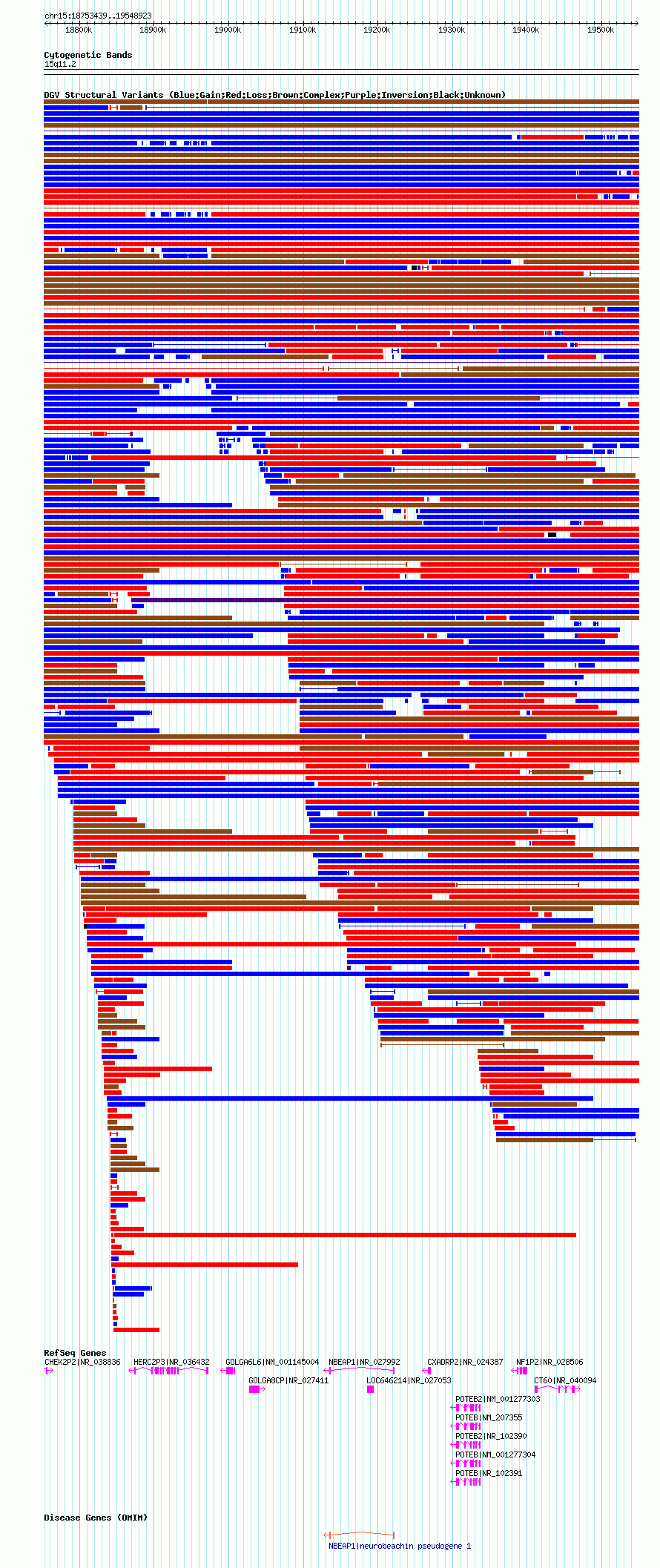 | | Variant Type | CNV gain | | Copy Number | | | Allele State | | | Allele Origin | | | Probe Count | | | Validation Flag | | | Merged Status | M | | Merged Variants | dgv2212n100 | | Supporting Variants | nssv3536066 | | Samples | | | Known Genes | CHEK2P2, CT60, CXADRP2, GOLGA6L6, GOLGA8CP, HERC2P3, LOC646214, NBEAP1, NF1P2, POTEB, POTEB2 | | Method | SNP array | | Analysis | Affymetrix SNP array copy number analysis | | Platform | Affymetrix SNP Array 6.0 | | Comments | | | Reference | Coe_et_al_2014 | | Pubmed ID | 25217958 | | Accession Number(s) | nsv1037281