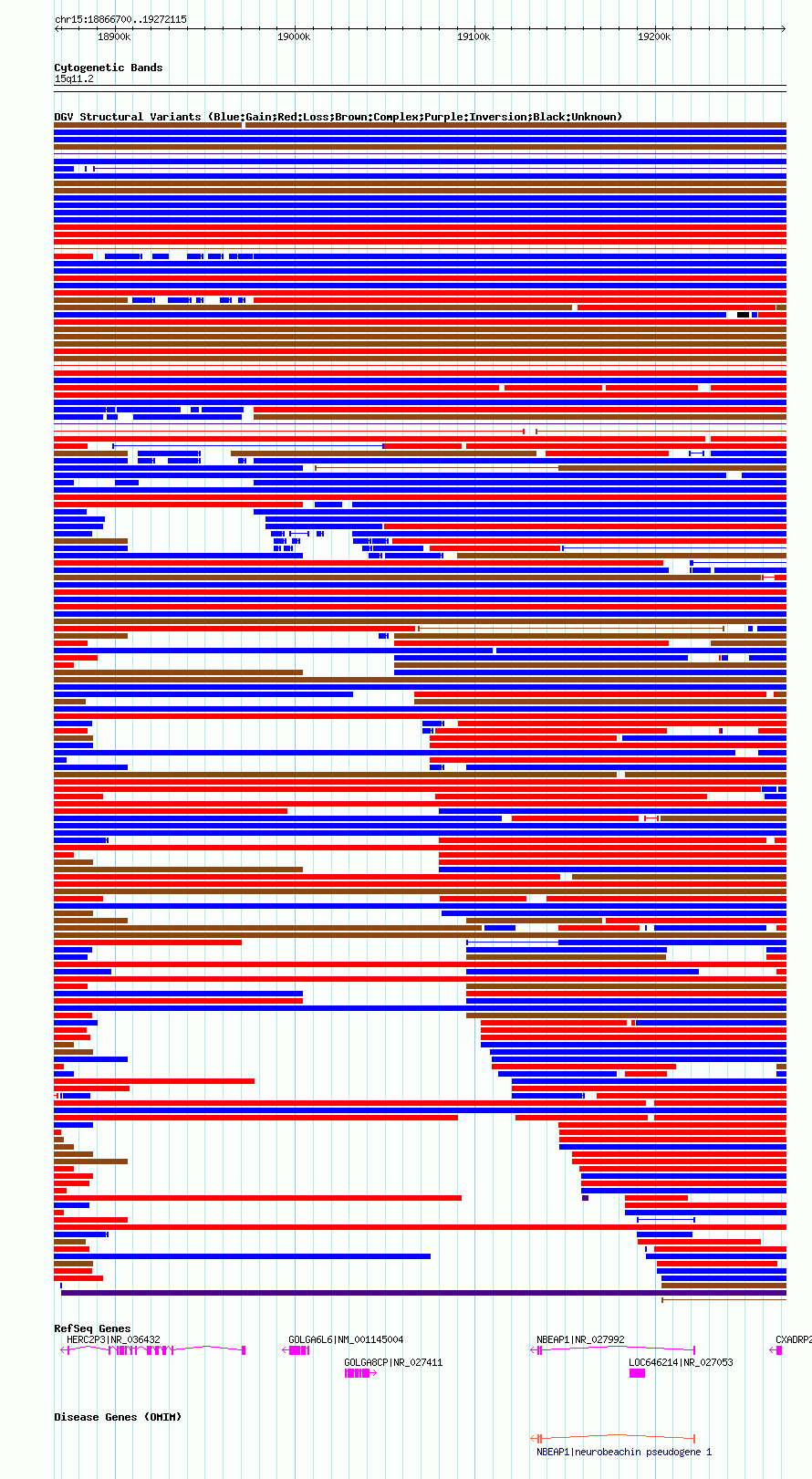 Variant DetailsVariant: nsv1037623| Internal ID | 19126842 | | Landmark | | | Location Information | | | Cytoband | 15q11.1 | | Allele length | | Assembly | Allele length | | hg38 | 405314 | | hg19 | 405390 | | hg18 | 405416 |