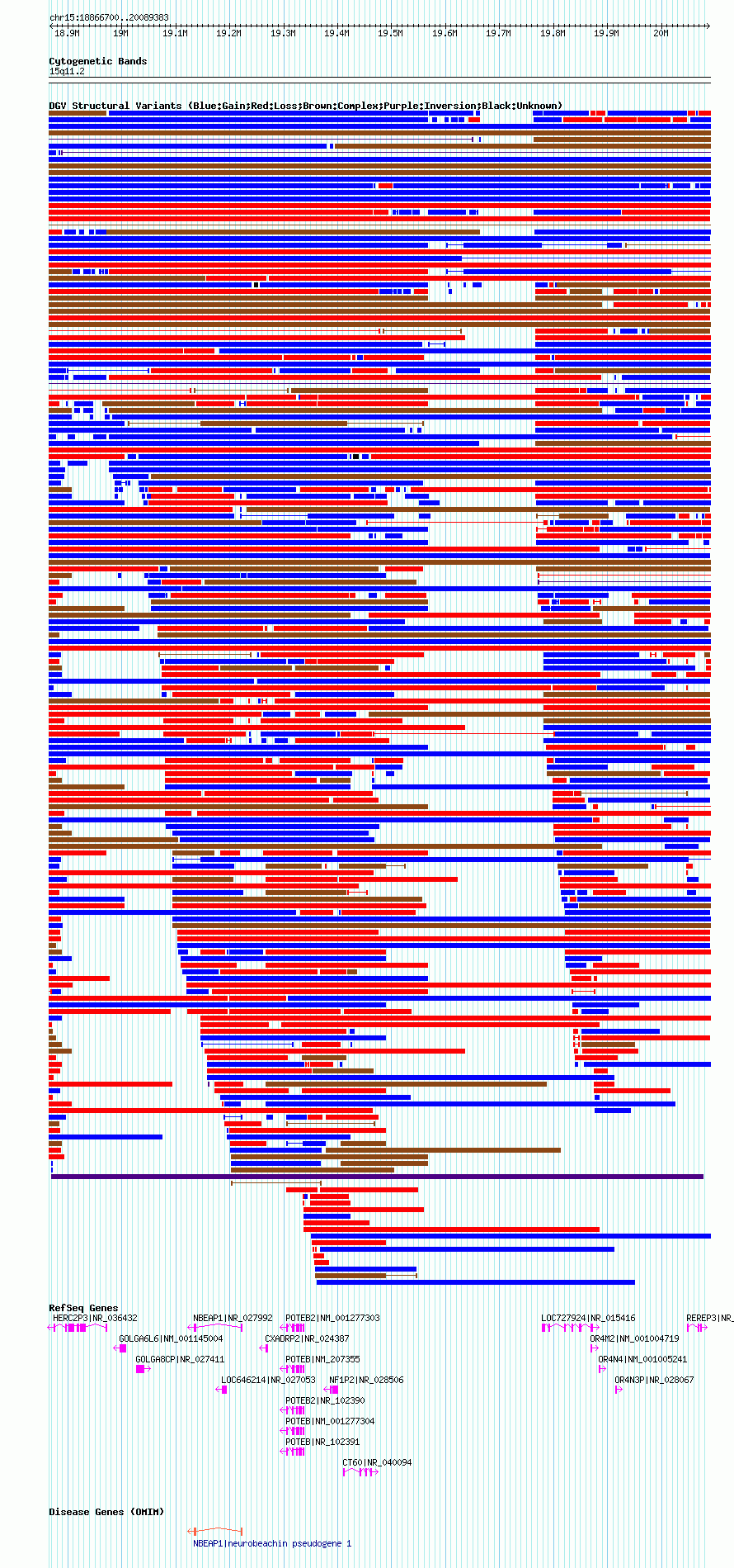 Variant DetailsVariant: nsv1037891| Internal ID | 19127110 | | Landmark | | | Location Information | | | Cytoband | 15q11.1 | | Allele length | | Assembly | Allele length | | hg38 | 1898636 | | hg19 | 1981334 | | hg18 | 1222684 |