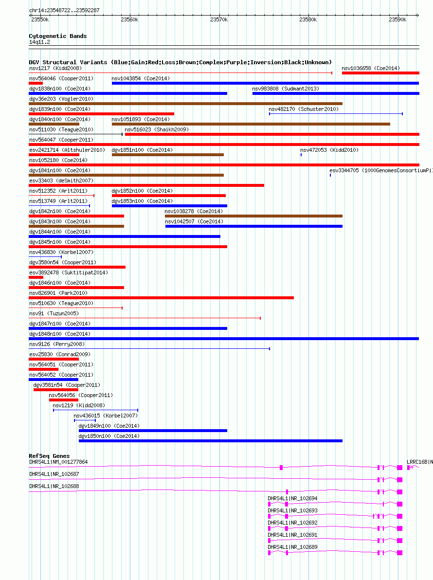 Variant DetailsVariant: nsv1037929| Internal ID | 19127148 | | Landmark | | | Location Information | | | Cytoband | 14q11.2 | | Allele length | | Assembly | Allele length | | hg38 | 43566 | | hg19 | 43566 | | hg18 | 43566 |