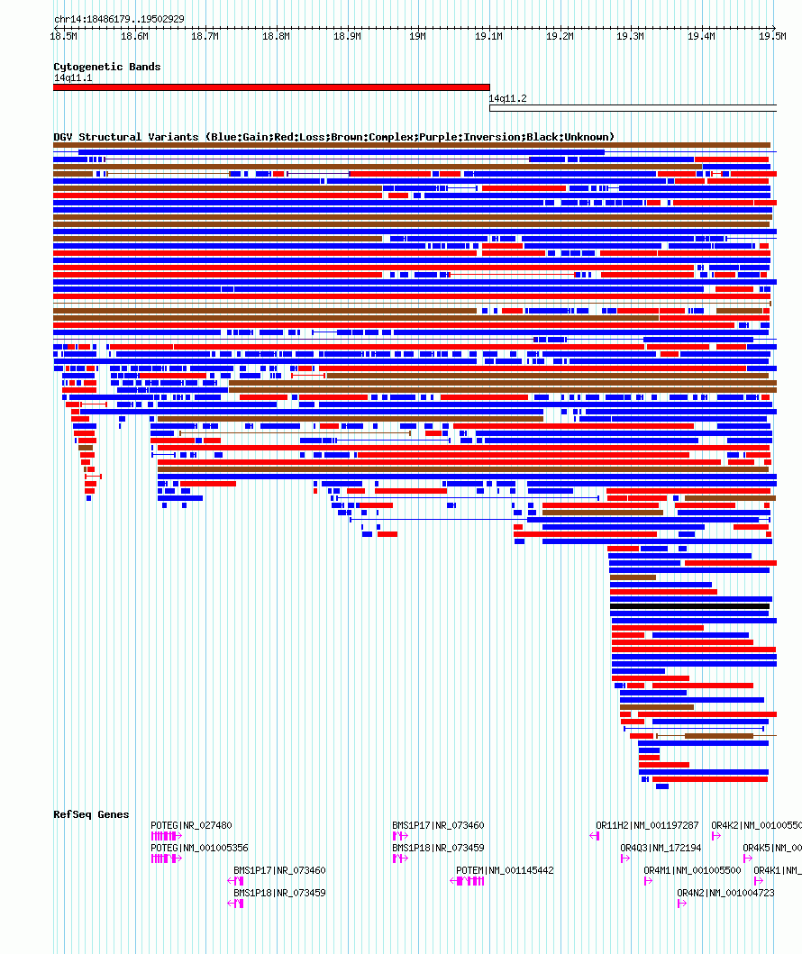 Variant DetailsVariant: nsv1038159| Internal ID | 19127378 | | Landmark | | | Location Information | | | Cytoband | 14q11.1 | | Allele length | | Assembly | Allele length | | hg38 | 1325229 | | hg19 | 1016911 | | hg18 | 1016751 |