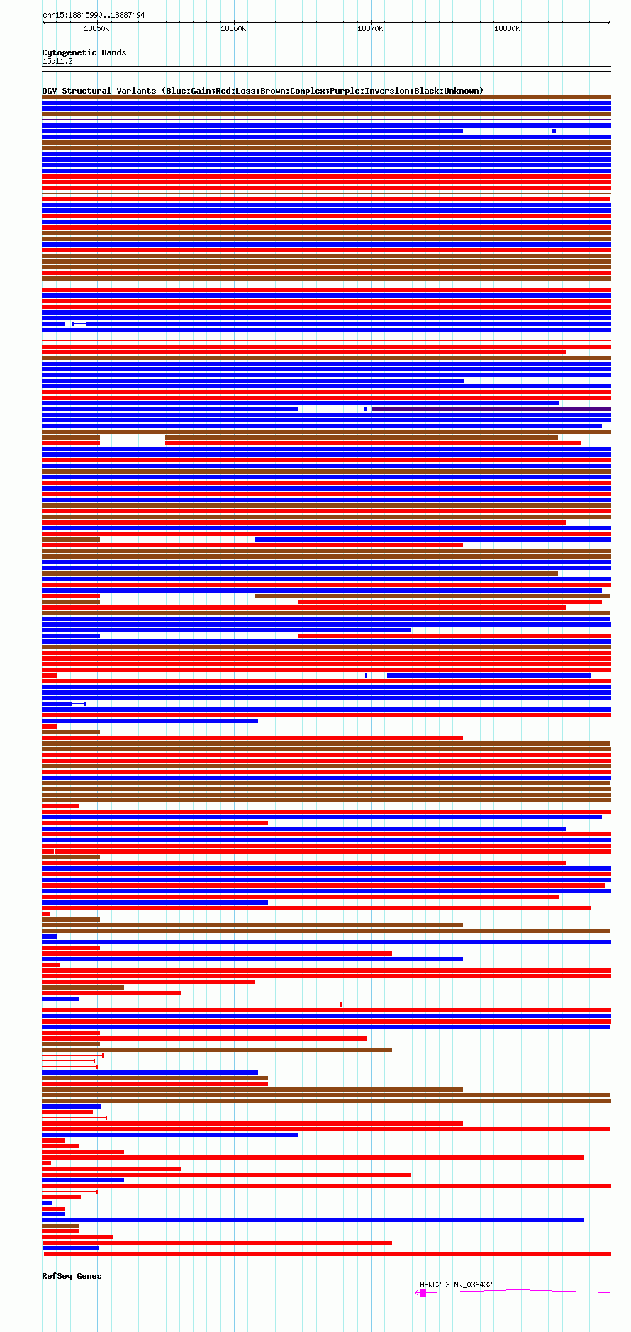 Variant DetailsVariant: nsv1038247| Internal ID | 19127466 | | Landmark | | | Location Information | | | Cytoband | 15q11.1 | | Allele length | | Assembly | Allele length | | hg38 | 41505 | | hg19 | 41505 | | hg18 | 41505 |