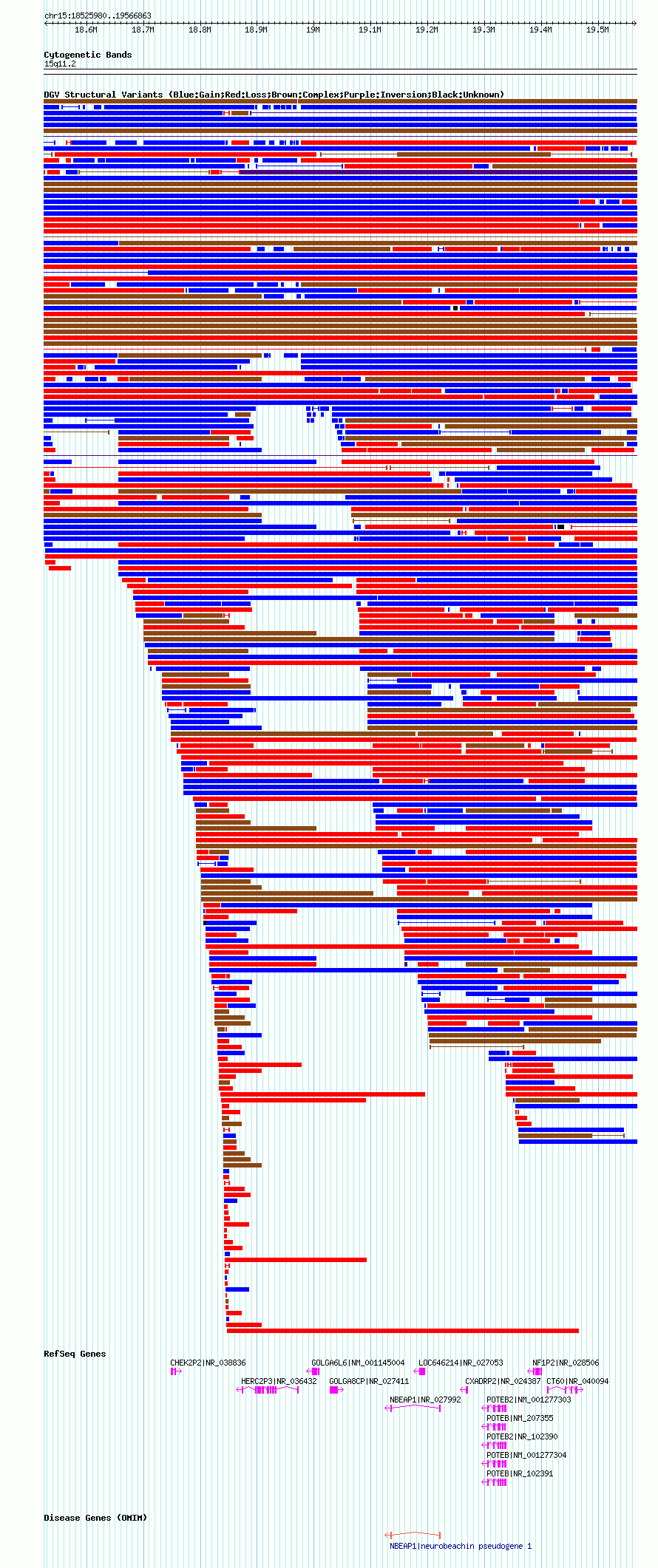 Variant DetailsVariant: nsv1038468| Internal ID | 19127687 | | Landmark | | | Location Information | | | Cytoband | 15q11.1 | | Allele length | | Assembly | Allele length | | hg38 | 1036163 | | hg19 | 1036239 | | hg18 | 1040884 |
