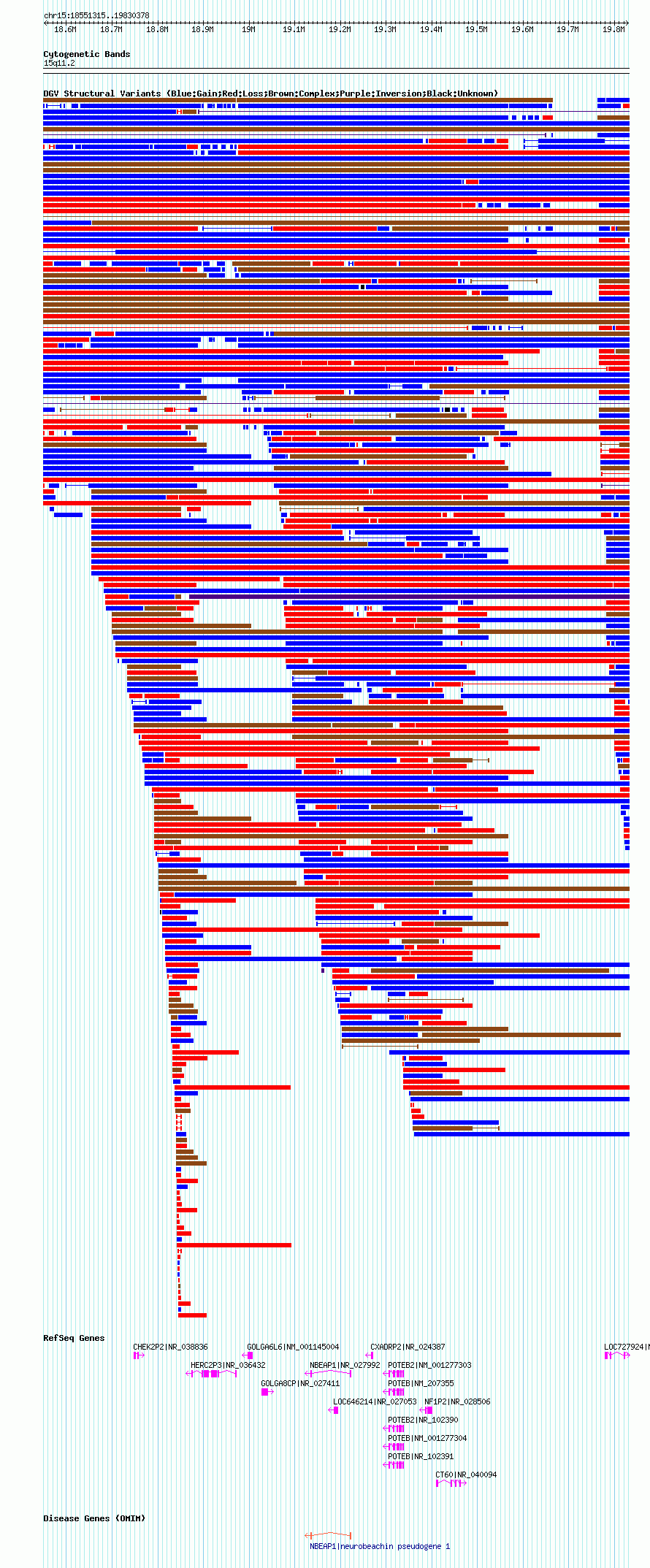 Variant DetailsVariant: nsv1038675| Internal ID | 19127894 | | Landmark | | | Location Information | | | Cytoband | 15q11.1 | | Allele length | | Assembly | Allele length | | hg38 | 1955016 | | hg19 | 2037714 | | hg18 | 1279064 |