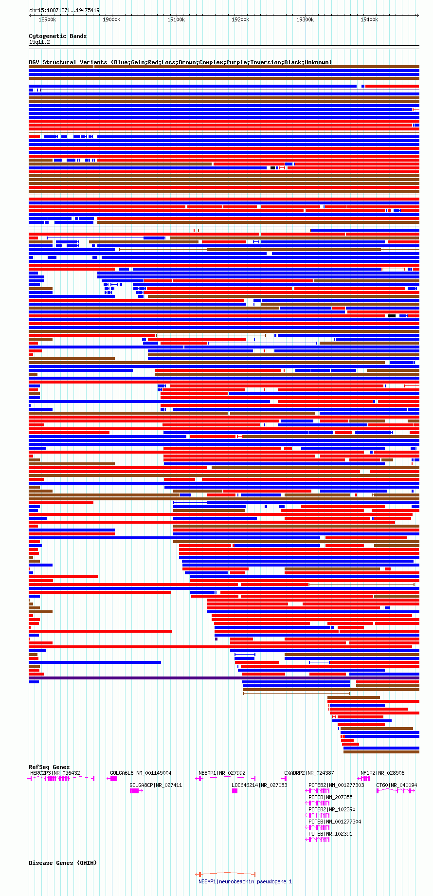 Variant DetailsVariant: nsv1038777| Internal ID | 19127996 | | Landmark | | | Location Information | | | Cytoband | 15q11.1 | | Allele length | | Assembly | Allele length | | hg38 | 599328 | | hg19 | 599404 | | hg18 | 604049 |