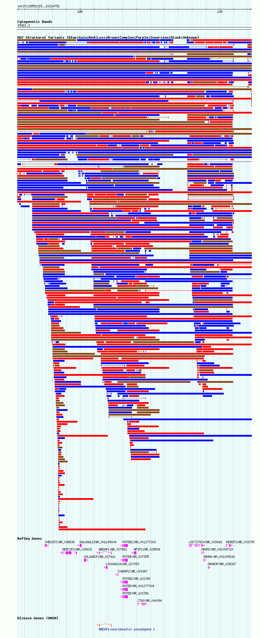 Variant DetailsVariant: nsv1038803| Internal ID | 19128022 | | Landmark | | | Location Information | | | Cytoband | 15q11.1 | | Allele length | | Assembly | Allele length | | hg38 | 2222195 | | hg19 | 2382087 | | hg18 | 1673437 |