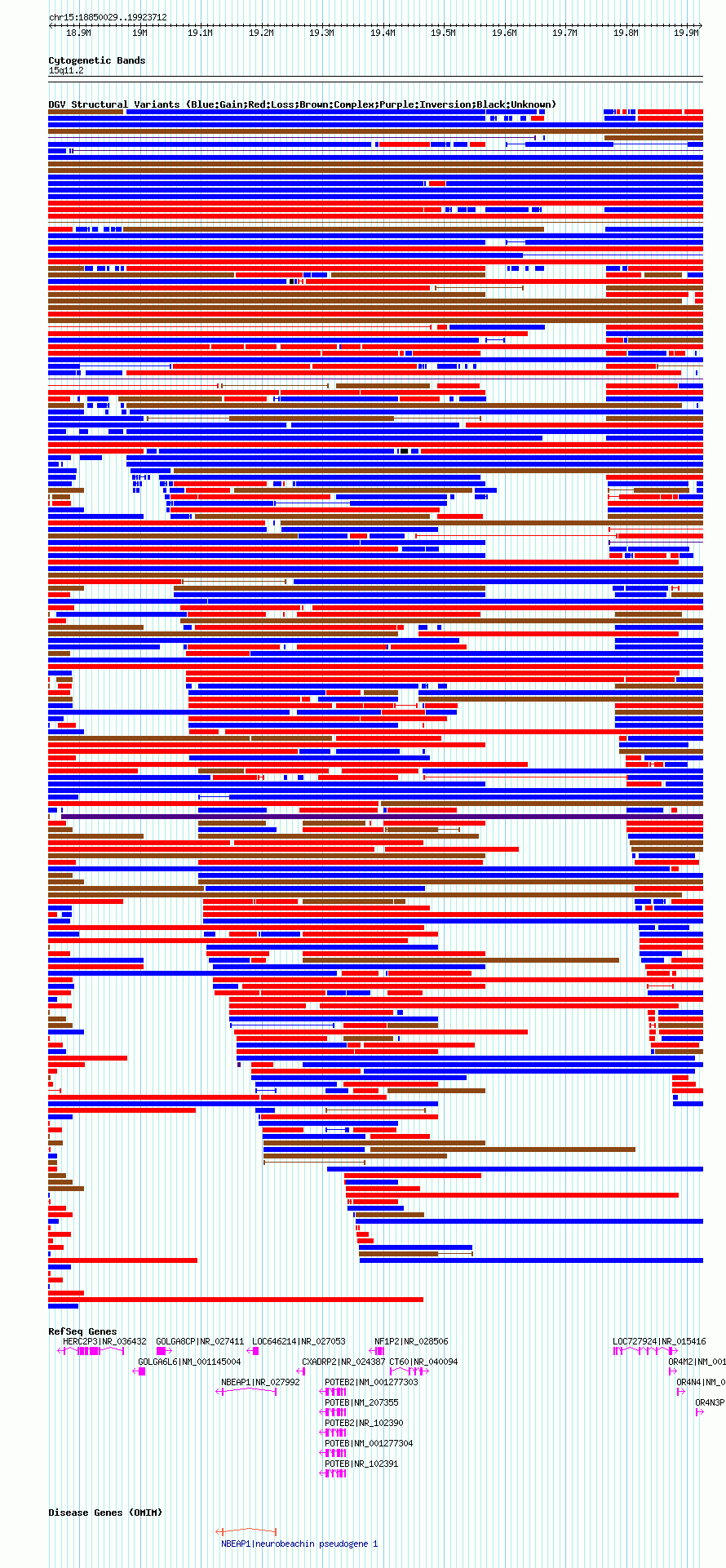 Variant DetailsVariant: nsv1038861| Internal ID | 19128080 | | Landmark | | | Location Information | | | Cytoband | 15q11.1 | | Allele length | | Assembly | Allele length | | hg38 | 1749636 | | hg19 | 1832334 | | hg18 | 1073684 |