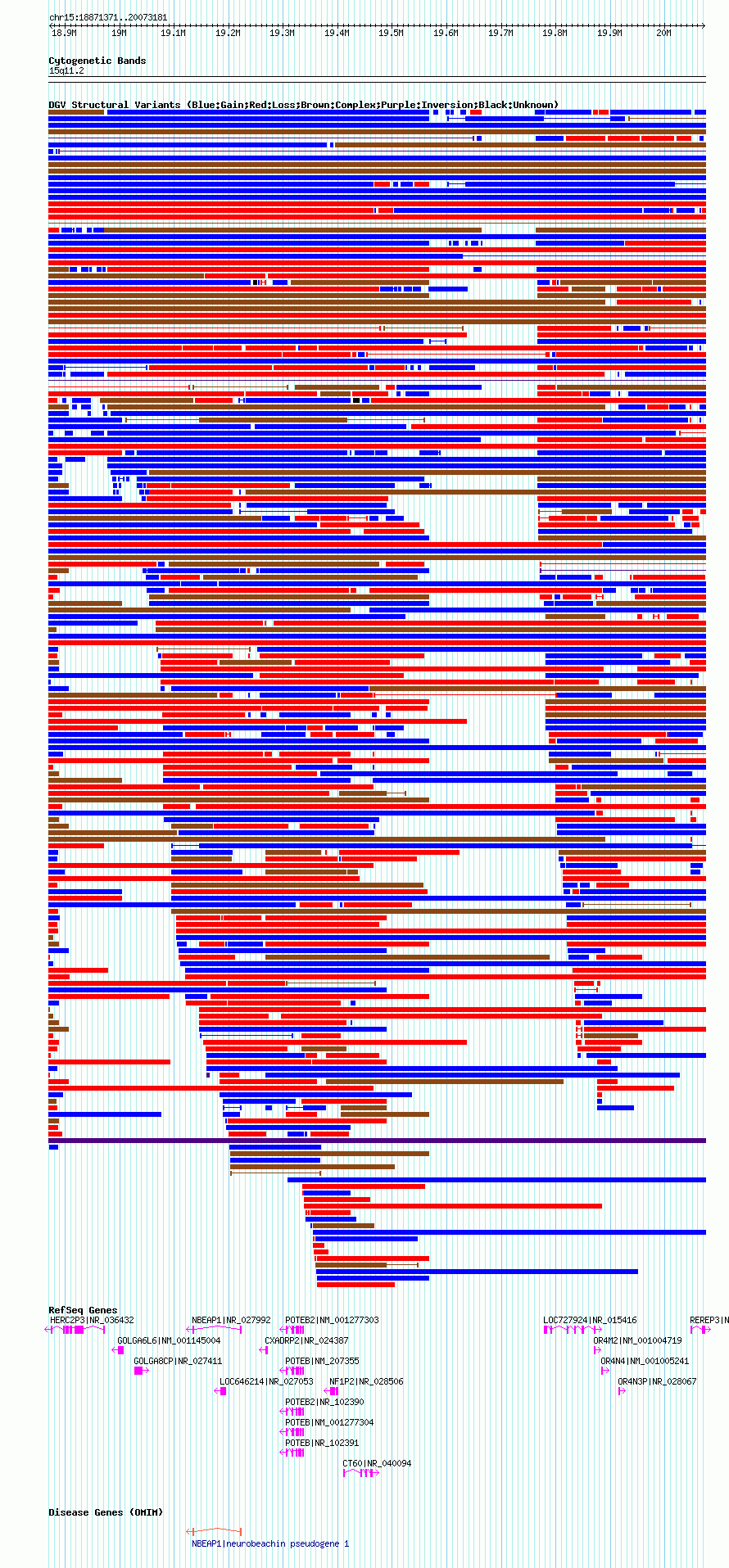 Variant DetailsVariant: nsv1038959| Internal ID | 19128178 | | Landmark | | | Location Information | | | Cytoband | 15q11.1 | | Allele length | | Assembly | Allele length | | hg38 | 1877763 | | hg19 | 1960461 | | hg18 | 1201811 |