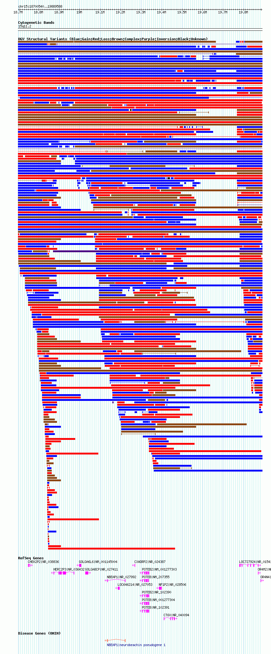 Variant DetailsVariant: nsv1038994| Internal ID | 19128213 | | Landmark | | | Location Information | | | Cytoband | 15q11.1 | | Allele length | | Assembly | Allele length | | hg38 | 1865001 | | hg19 | 1947699 | | hg18 | 1189049 |