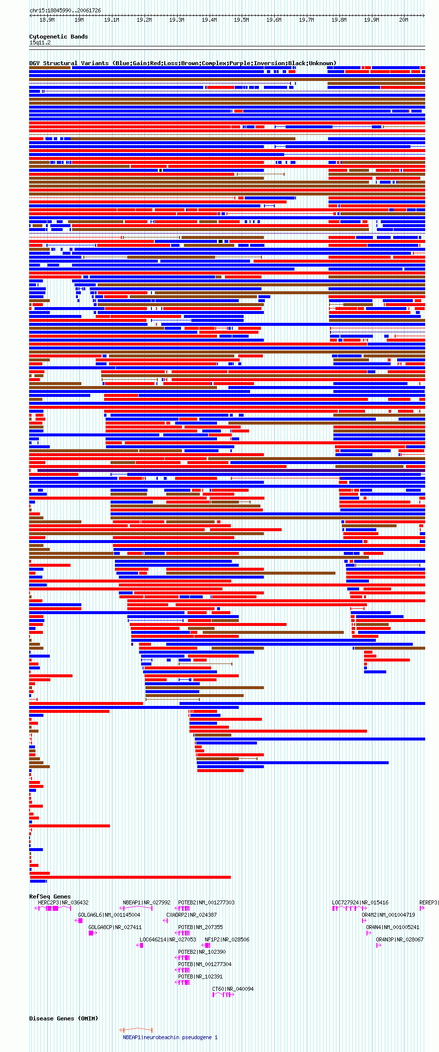 Variant DetailsVariant: nsv1039004| Internal ID | 19128223 | | Landmark | | | Location Information | | | Cytoband | 15q11.1 | | Allele length | | Assembly | Allele length | | hg38 | 1891689 | | hg19 | 1974387 | | hg18 | 1215737 |