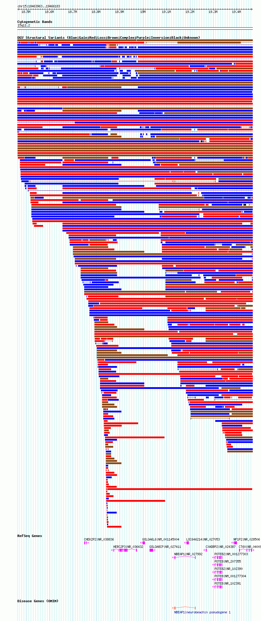 Variant DetailsVariant: nsv1039456| Internal ID | 19128675 | | Landmark | | | Location Information | | | Cytoband | 15q11.1 | | Allele length | | Assembly | Allele length | | hg38 | 997500 | | hg19 | 997576 | | hg18 | 1002221 |