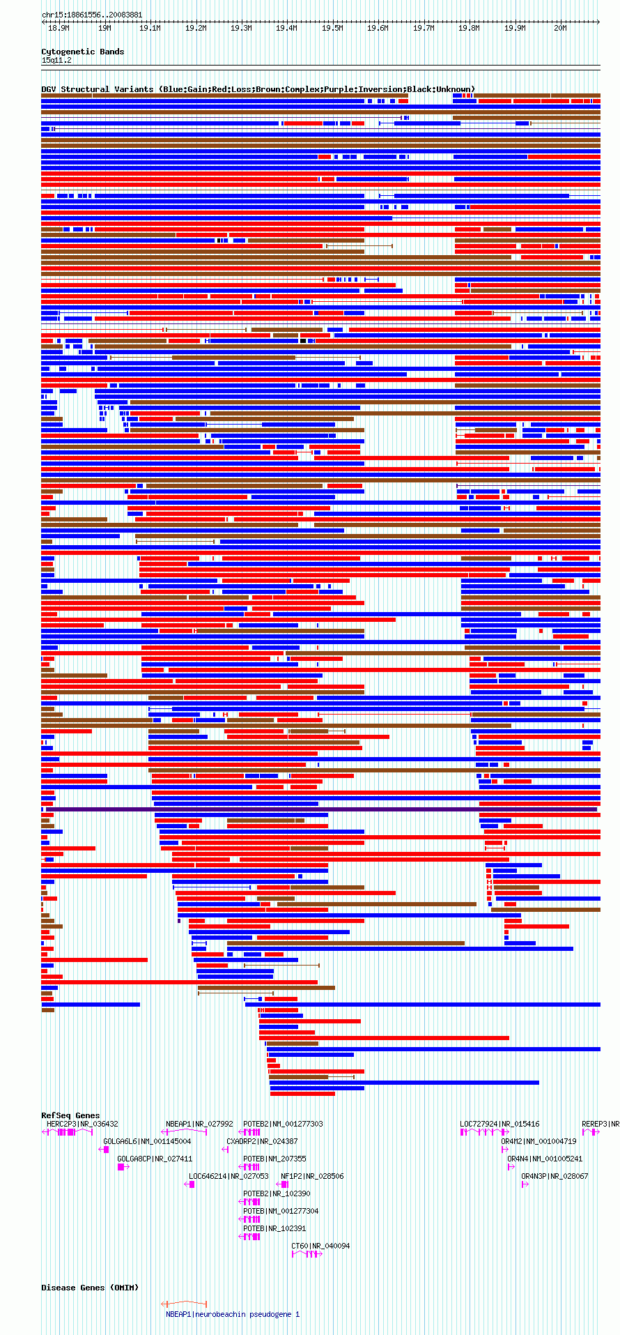 Variant DetailsVariant: nsv1039727| Internal ID | 19128946 | | Landmark | | | Location Information | | | Cytoband | 15q11.1 | | Allele length | | Assembly | Allele length | | hg38 | 1898278 | | hg19 | 1980976 | | hg18 | 1222326 |