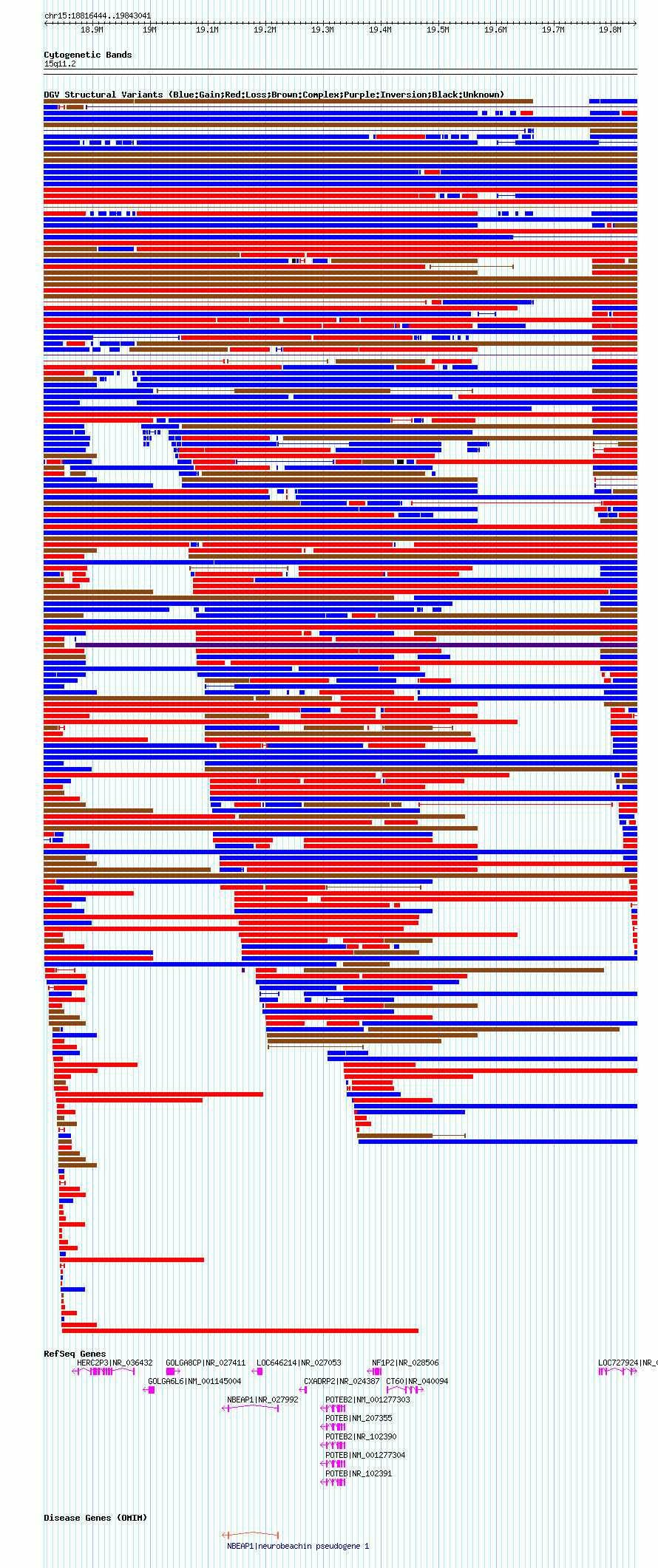 Variant DetailsVariant: nsv1039795| Internal ID | 19129014 | | Landmark | | | Location Information | | | Cytoband | 15q11.1 | | Allele length | | Assembly | Allele length | | hg38 | 1702550 | | hg19 | 1785248 | | hg18 | 1026598 |