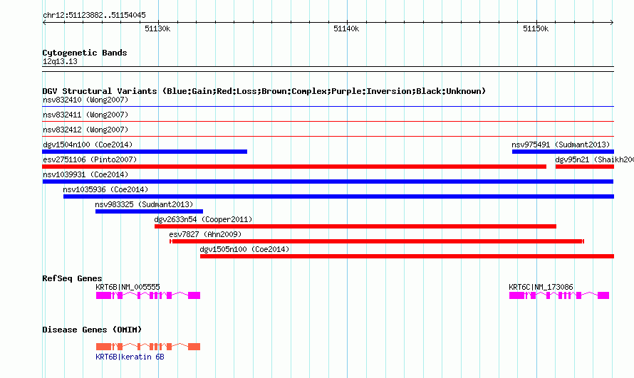 Variant DetailsVariant: nsv1039931| Internal ID | 19129150 | | Landmark | | | Location Information | | | Cytoband | 12q13.13 | | Allele length | | Assembly | Allele length | | hg38 | 30164 | | hg19 | 30164 | | hg18 | 30164 |
