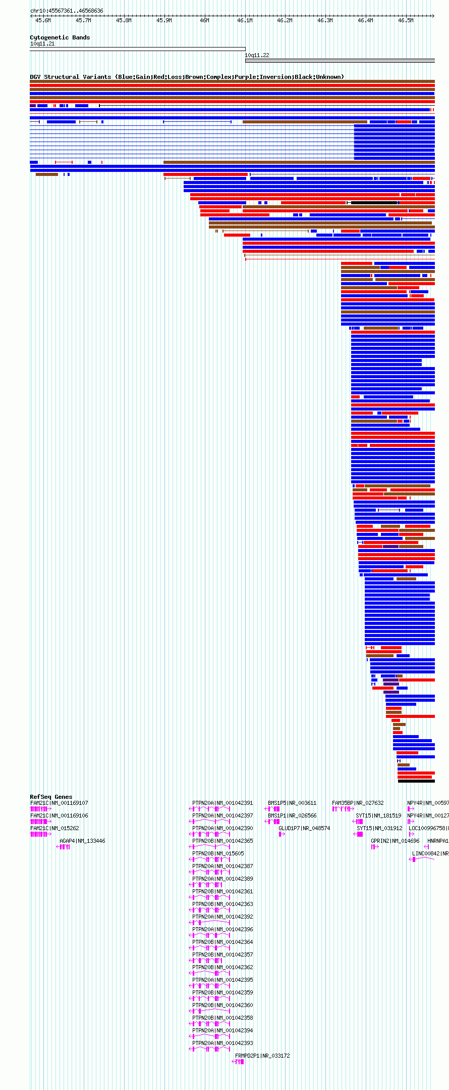 Variant DetailsVariant: nsv1039962| Internal ID | 19129181 | | Landmark | | | Location Information | | | Cytoband | 10q11.21 | | Allele length | | Assembly | Allele length | | hg19 | 901276 | | hg18 | 1001276 |