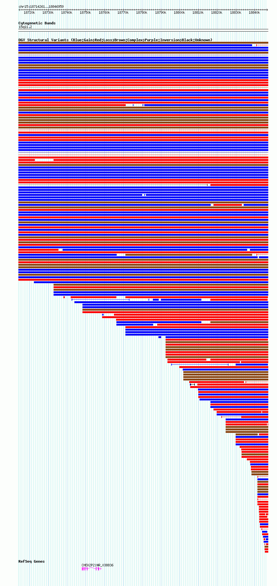 Variant DetailsVariant: nsv1040342| Internal ID | 19129561 | | Landmark | | | Location Information | | | Cytoband | 15q11.1 | | Allele length | | Assembly | Allele length | | hg38 | 132699 | | hg19 | 132699 | | hg18 | 132699 |