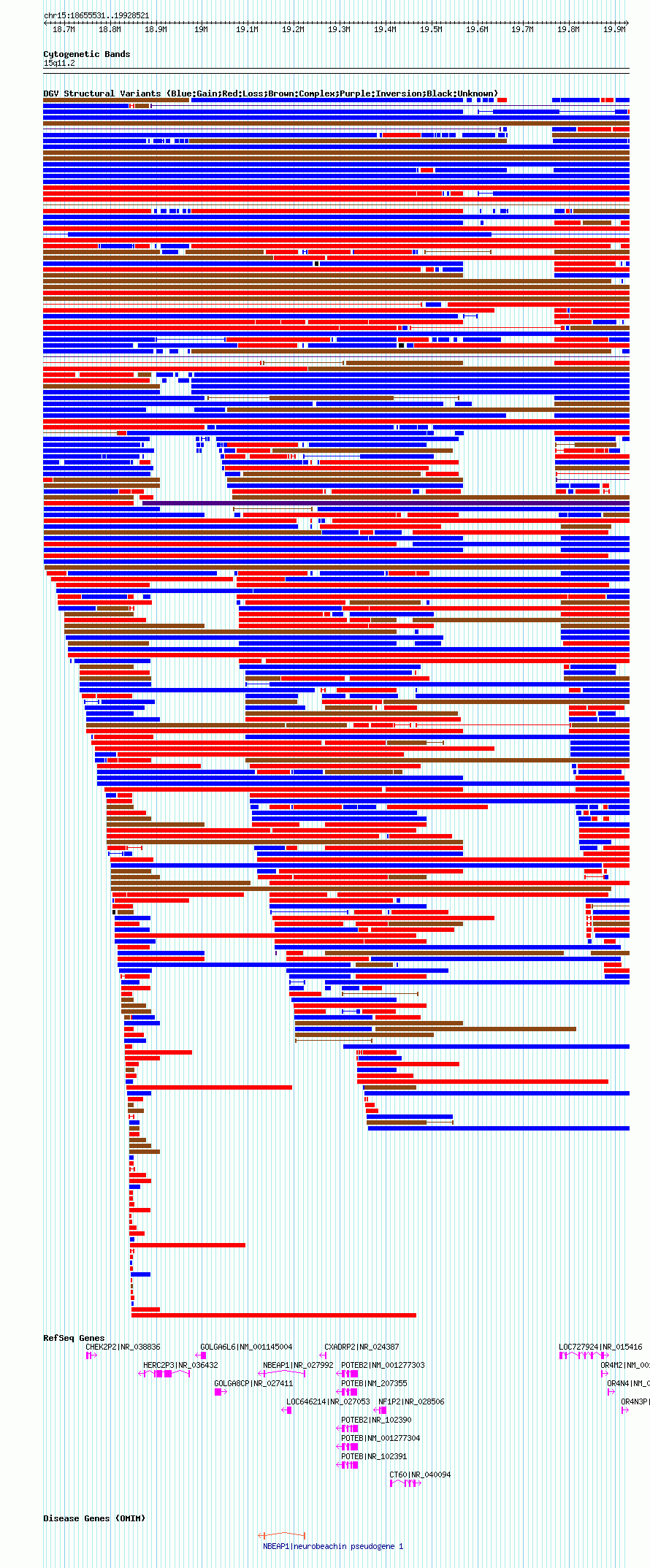 | | Variant Type | CNV gain | | Copy Number | | | Allele State | | | Allele Origin | | | Probe Count | | | Validation Flag | | | Merged Status | M | | Merged Variants | dgv2214n100 | | Supporting Variants | nssv3538060, nssv3538059 | | Samples | | | Known Genes | CHEK2P2, CT60, CXADRP2, GOLGA6L6, GOLGA8CP, HERC2P3, LOC646214, LOC727924, NBEAP1, NF1P2, OR4M2, OR4N3P, OR4N4, POTEB, POTEB2 | | Method | SNP array | | Analysis | Affymetrix SNP array copy number analysis | | Platform | Affymetrix SNP Array 6.0 | | Comments | | | Reference | Coe_et_al_2014 | | Pubmed ID | 25217958 | | Accession Number(s) | nsv1040414
