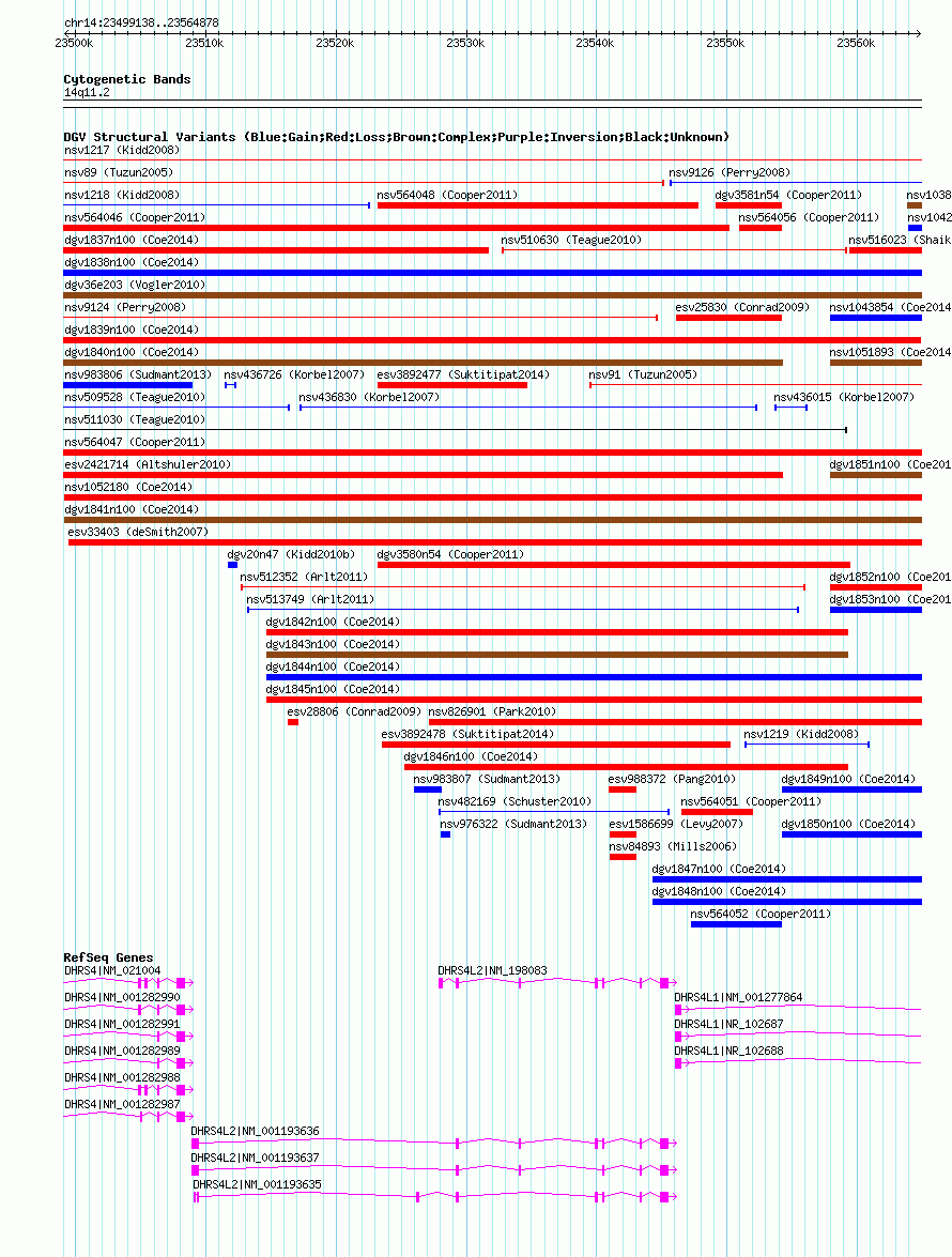 Variant DetailsVariant: nsv1040468| Internal ID | 19129687 | | Landmark | | | Location Information | | | Cytoband | 14q11.2 | | Allele length | | Assembly | Allele length | | hg38 | 65741 | | hg19 | 65741 | | hg18 | 65741 |