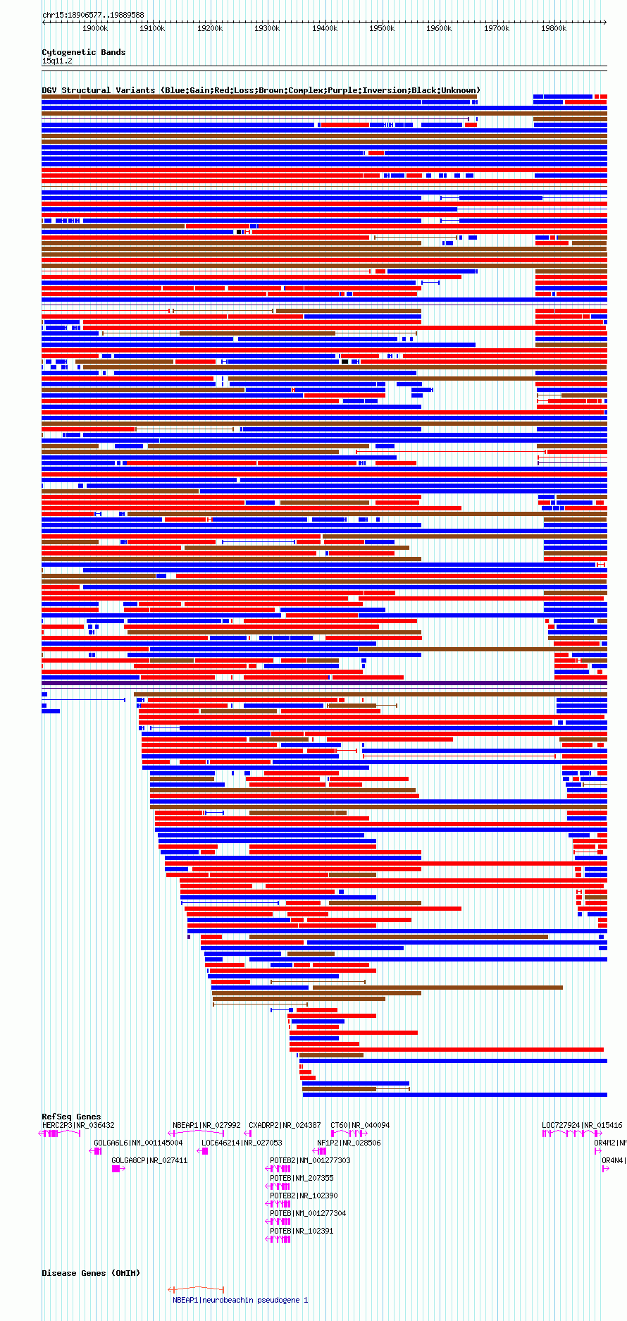 Variant DetailsVariant: nsv1040550| Internal ID | 19129769 | | Landmark | | | Location Information | | | Cytoband | 15q11.1 | | Allele length | | Assembly | Allele length | | hg38 | 1658964 | | hg19 | 1741662 | | hg18 | 983012 |