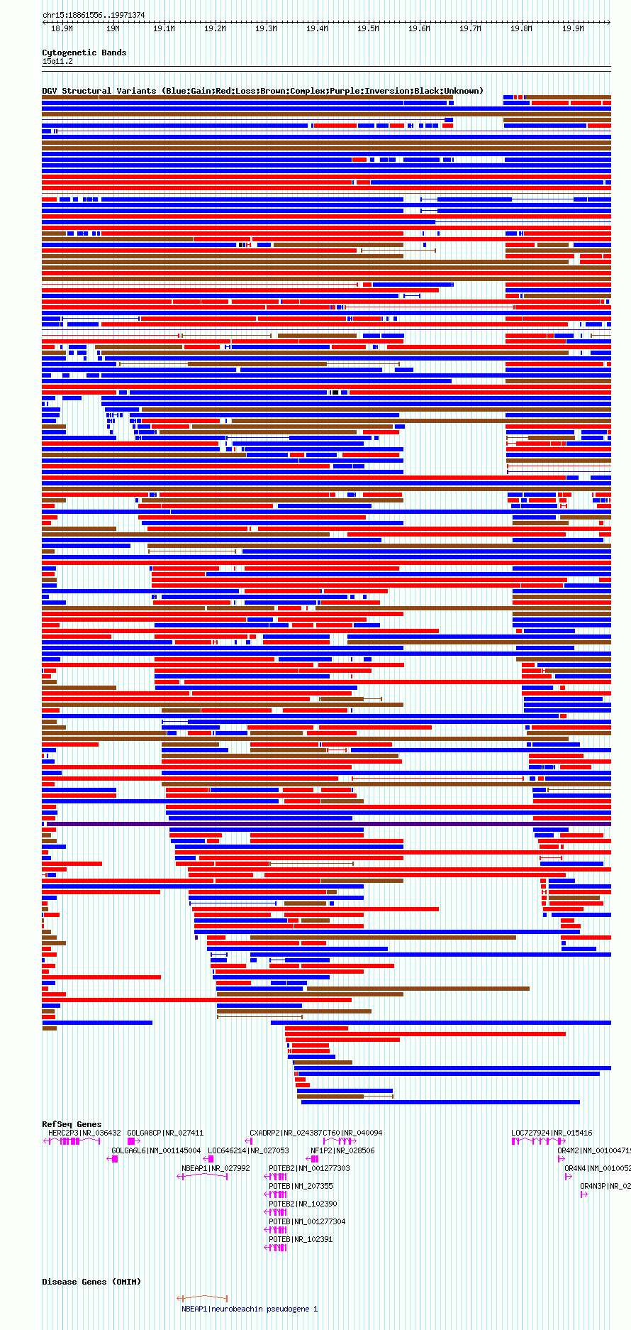 Variant DetailsVariant: nsv1040963| Internal ID | 19130182 | | Landmark | | | Location Information | | | Cytoband | 15q11.1 | | Allele length | | Assembly | Allele length | | hg38 | 1785771 | | hg19 | 1868469 | | hg18 | 1109819 |