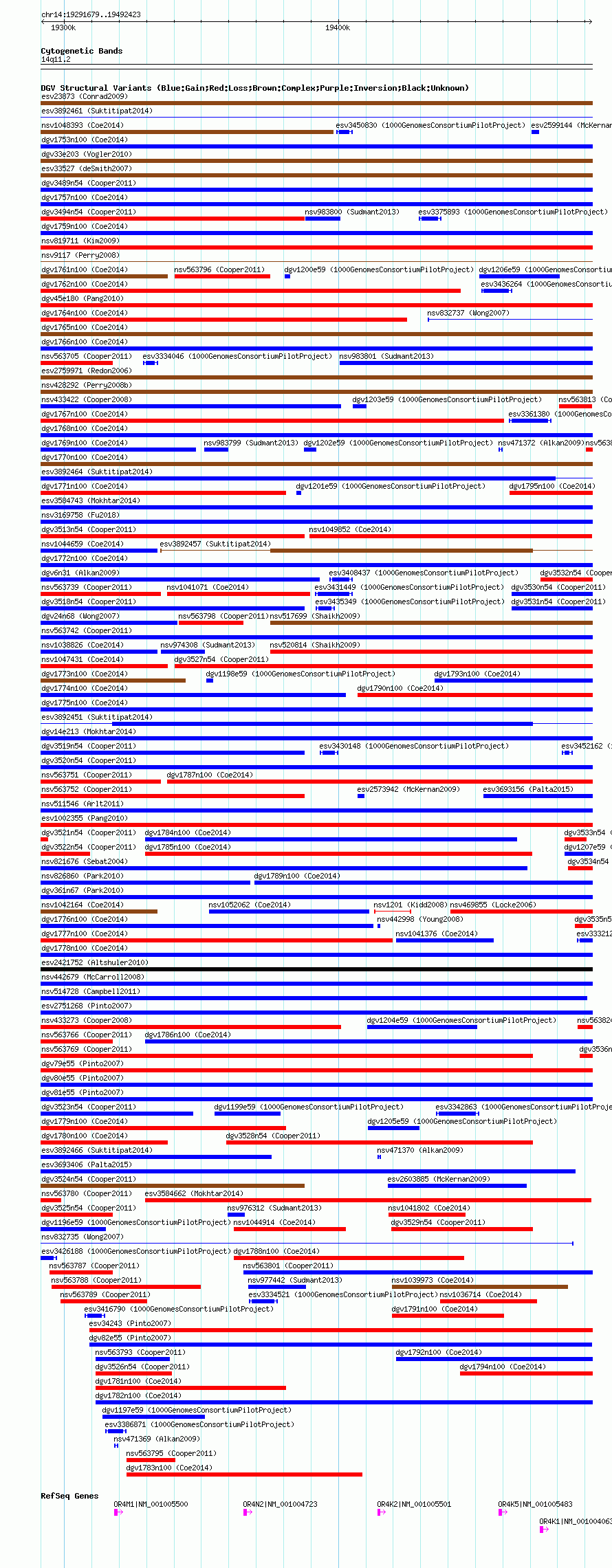 Variant DetailsVariant: nsv1041082| Internal ID | 19130301 | | Landmark | | | Location Information | | | Cytoband | 14q11.2 | | Allele length | | Assembly | Allele length | | hg38 | 200745 | | hg19 | 200745 | | hg18 | 200745 |