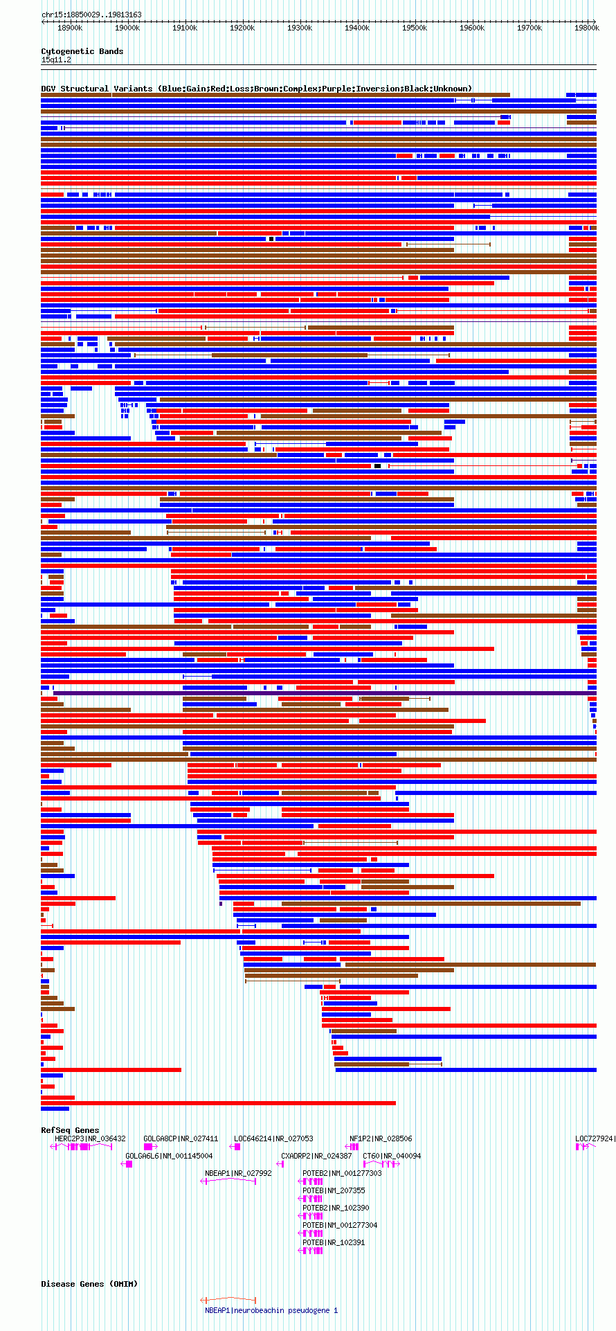 Variant DetailsVariant: nsv1041106| Internal ID | 19130325 | | Landmark | | | Location Information | | | Cytoband | 15q11.1 | | Allele length | | Assembly | Allele length | | hg38 | 1639087 | | hg19 | 1721785 | | hg18 | 963135 |