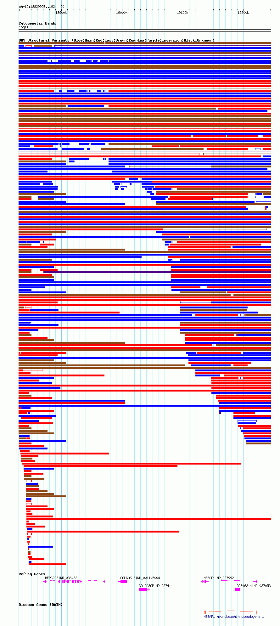 Variant DetailsVariant: nsv1041203| Internal ID | 19130422 | | Landmark | | | Location Information | | | Cytoband | 15q11.1 | | Allele length | | Assembly | Allele length | | hg38 | 414387 | | hg19 | 414463 | | hg18 | 414498 |
