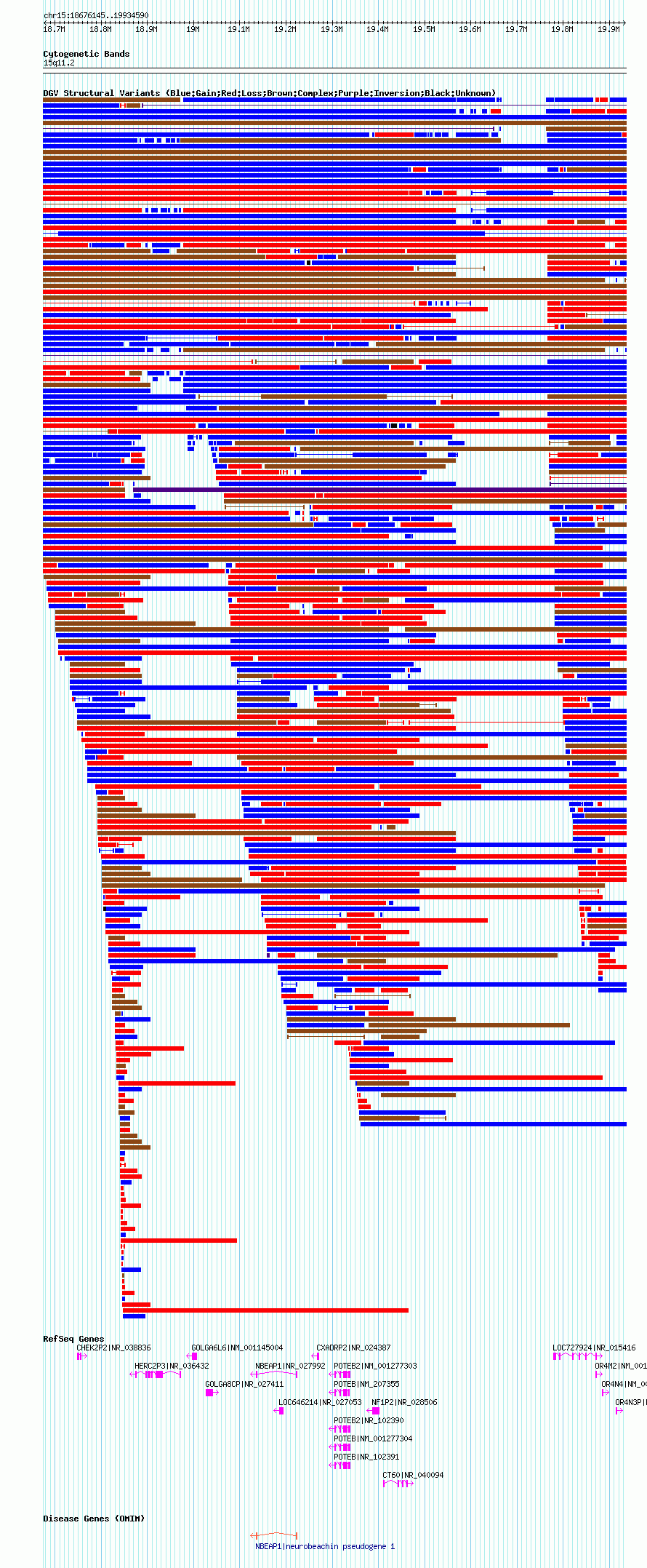 Variant DetailsVariant: nsv1041366| Internal ID | 19130585 | | Landmark | | | Location Information | | | Cytoband | 15q11.1 | | Allele length | | Assembly | Allele length | | hg38 | 1934398 | | hg19 | 2017096 | | hg18 | 1258446 |