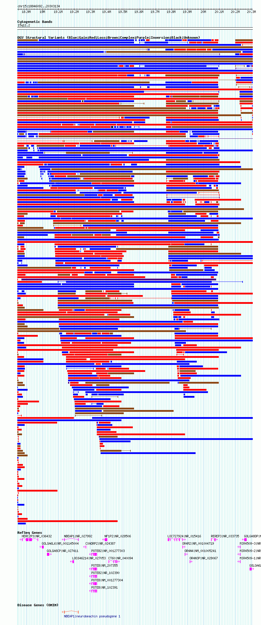 Variant DetailsVariant: nsv1041504| Internal ID | 19130723 | | Landmark | | | Location Information | | | Cytoband | 15q11.1 | | Allele length | | Assembly | Allele length | | hg38 | 2091734 | | hg19 | 2165693 | | hg18 | 1457043 |