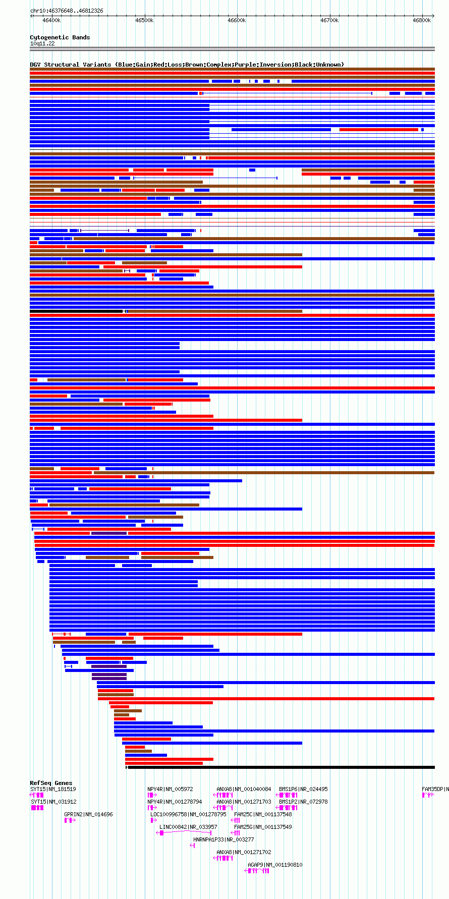 Variant DetailsVariant: nsv1041566| Internal ID | 19130785 | | Landmark | | | Location Information | | | Cytoband | 10q11.22 | | Allele length | | Assembly | Allele length | | hg19 | 435679 | | hg18 | 435679 |