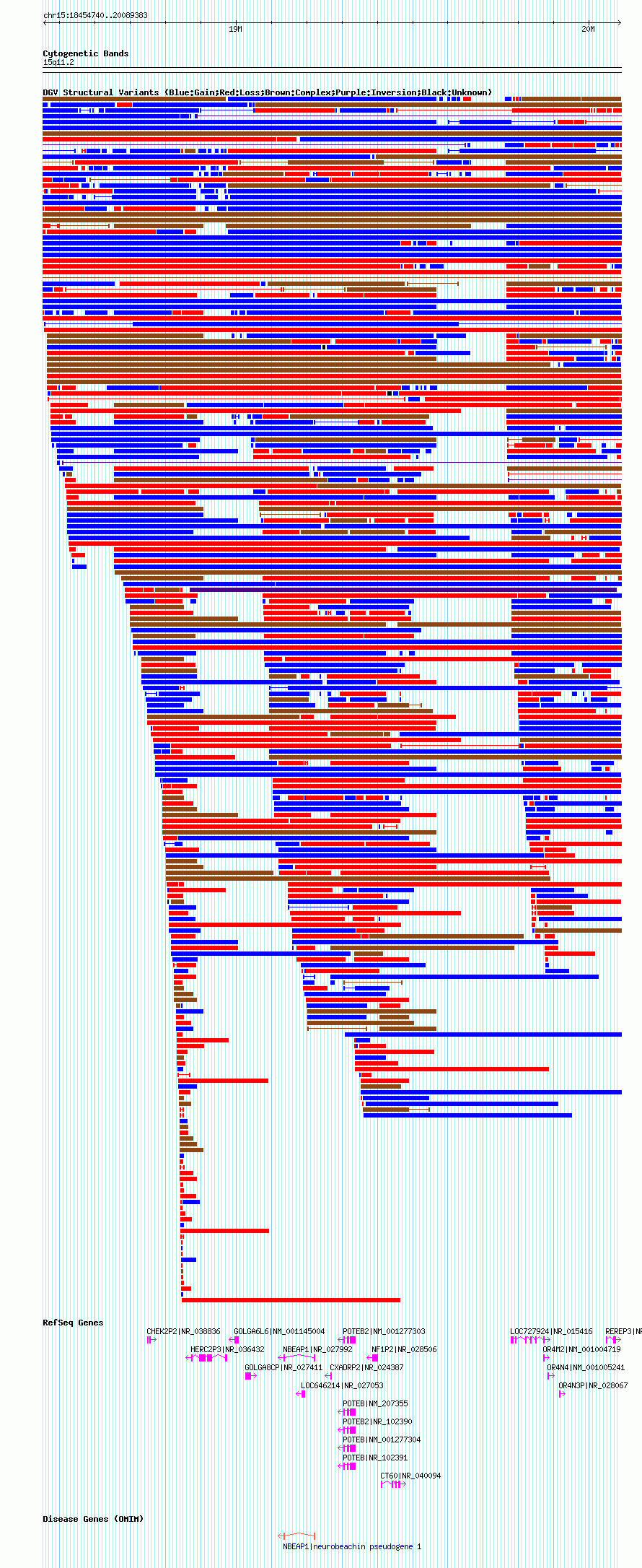 Variant DetailsVariant: nsv1041676| Internal ID | 19130895 | | Landmark | | | Location Information | | | Cytoband | 15q11.1 | | Allele length | | Assembly | Allele length | | hg38 | 2310596 | | hg19 | 2393294 | | hg18 | 1634644 |