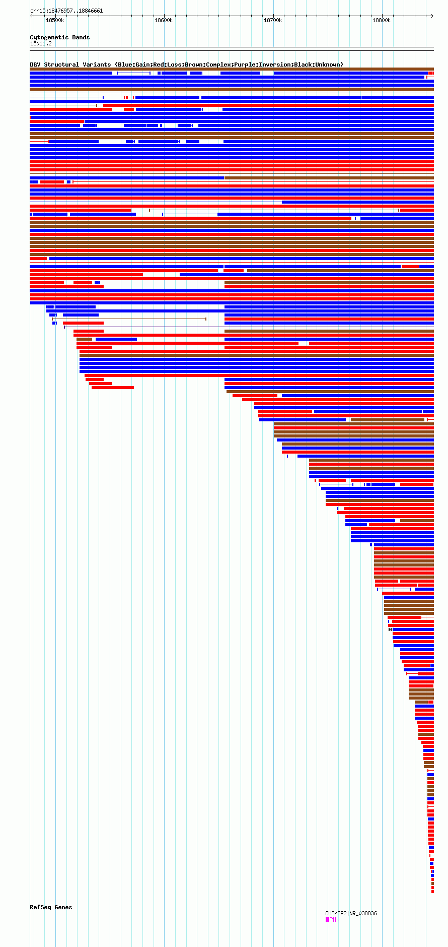 Variant DetailsVariant: nsv1041852| Internal ID | 19131071 | | Landmark | | | Location Information | | | Cytoband | 15q11.1 | | Allele length | | Assembly | Allele length | | hg38 | 369705 | | hg19 | 369705 | | hg18 | 369705 |