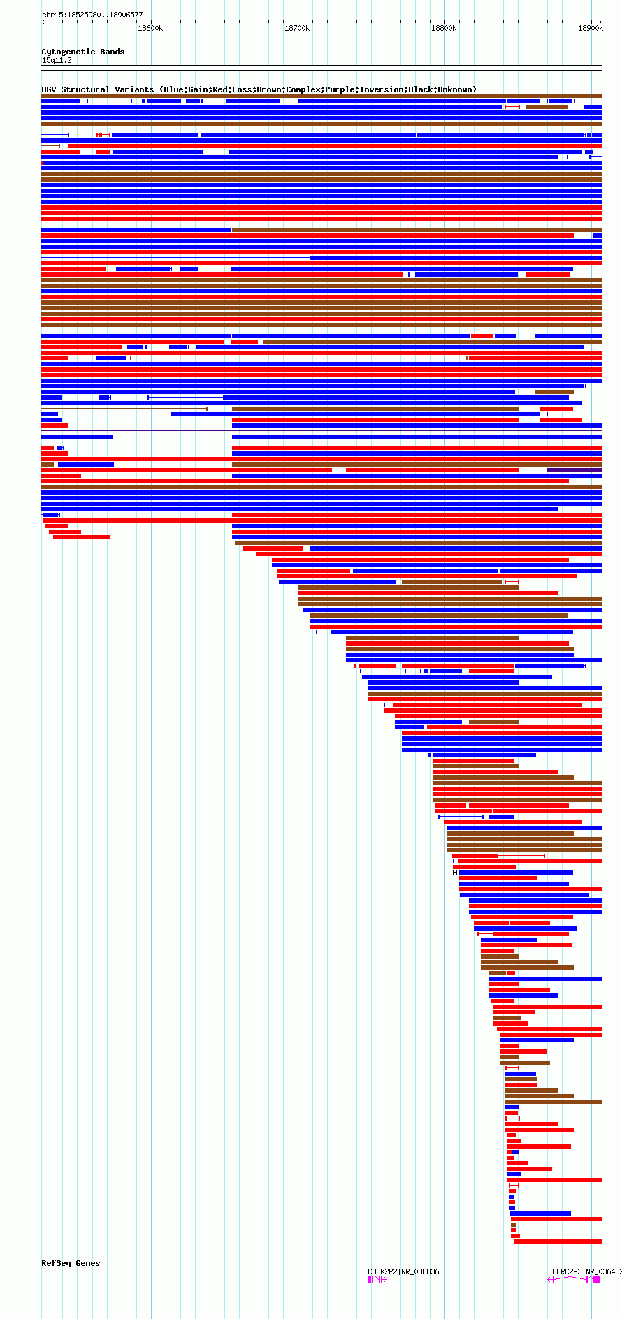 Variant DetailsVariant: nsv1041894| Internal ID | 19131113 | | Landmark | | | Location Information | | | Cytoband | 15q11.1 | | Allele length | | Assembly | Allele length | | hg38 | 380598 | | hg19 | 380598 | | hg18 | 380598 |