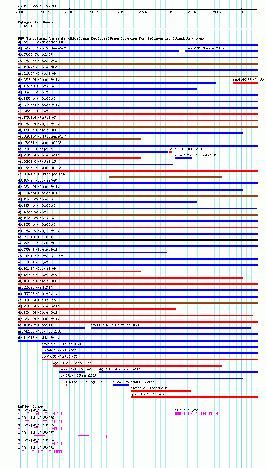 Variant DetailsVariant: nsv1041916| Internal ID | 19131135 | | Landmark | | | Location Information | | | Cytoband | 12p13.31 | | Allele length | | Assembly | Allele length | | hg38 | 97285 | | hg19 | 97285 | | hg18 | 97285 |