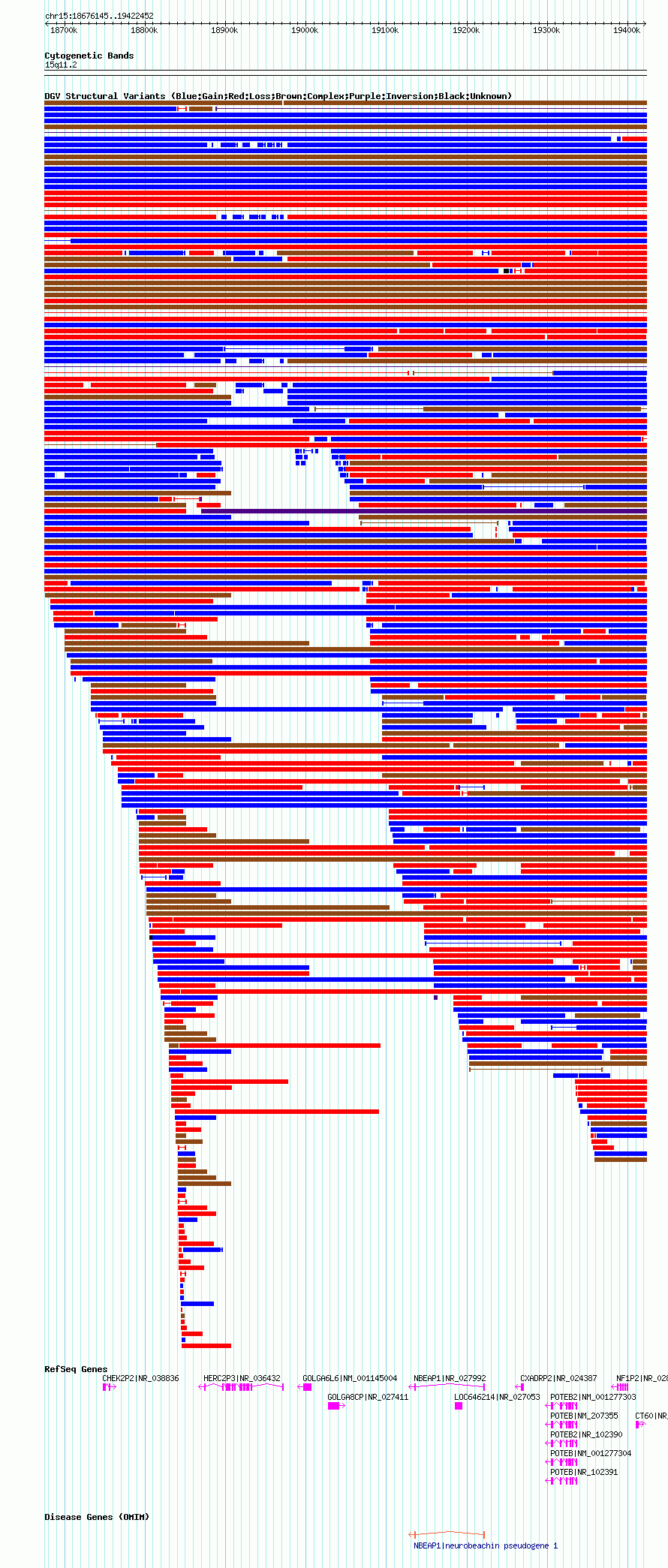 Variant DetailsVariant: nsv1041973| Internal ID | 19131192 | | Landmark | | | Location Information | | | Cytoband | 15q11.1 | | Allele length | | Assembly | Allele length | | hg38 | 741587 | | hg19 | 741663 | | hg18 | 746308 |