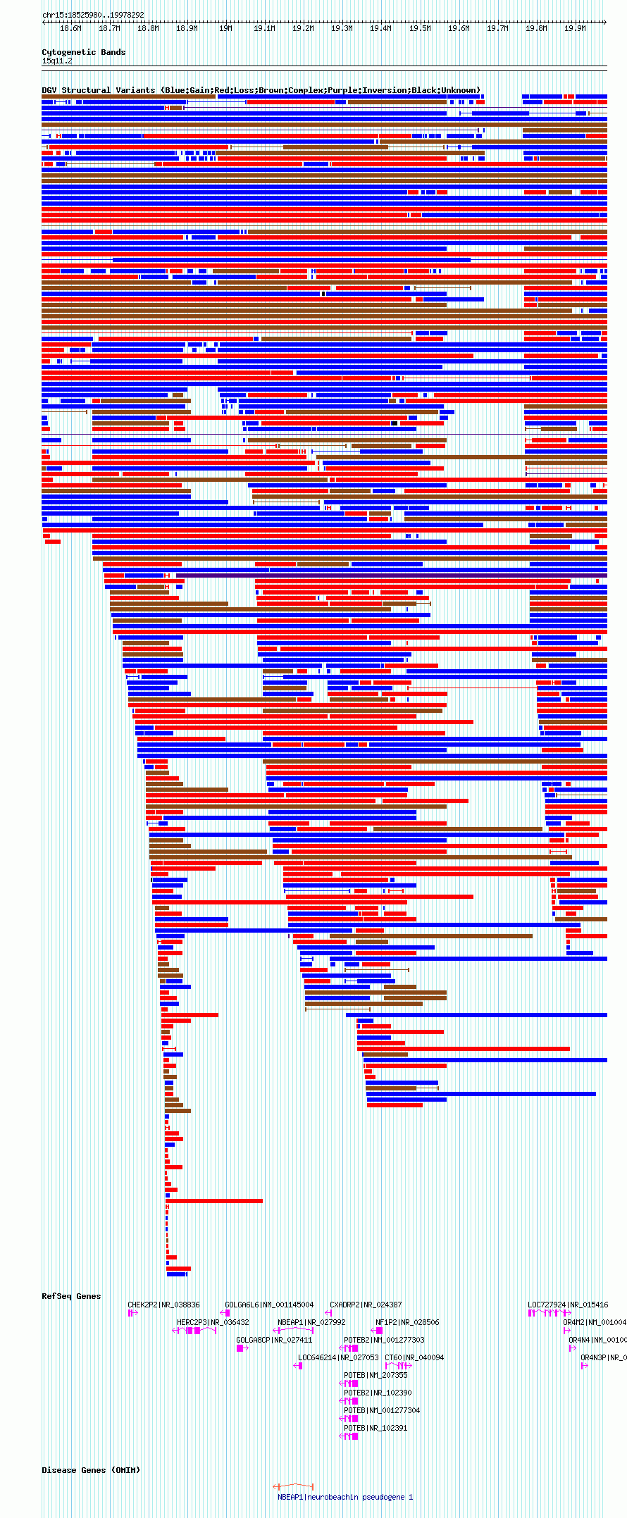 Variant DetailsVariant: nsv1042111| Internal ID | 19131330 | | Landmark | | | Location Information | | | Cytoband | 15q11.1 | | Allele length | | Assembly | Allele length | | hg38 | 2128265 | | hg19 | 2210963 | | hg18 | 1452313 |
