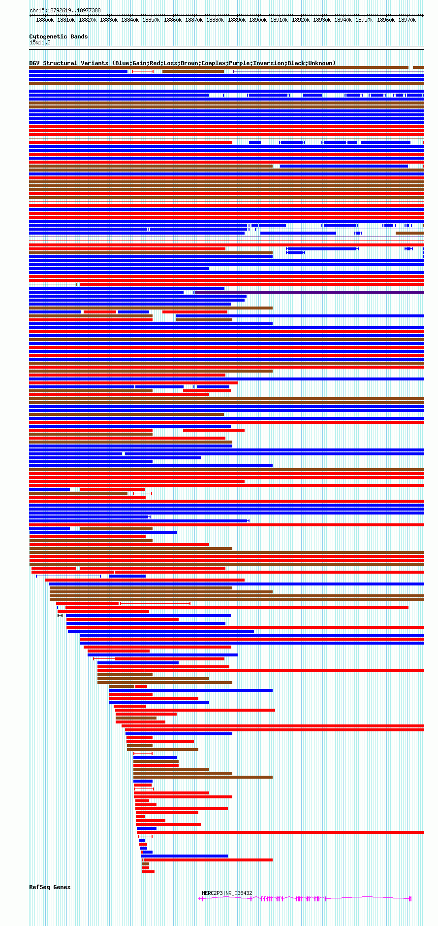 Variant DetailsVariant: nsv1042186| Internal ID | 19131405 | | Landmark | | | Location Information | | | Cytoband | 15q11.1 | | Allele length | | Assembly | Allele length | | hg38 | 184780 | | hg19 | 184770 | | hg18 | 184770 |