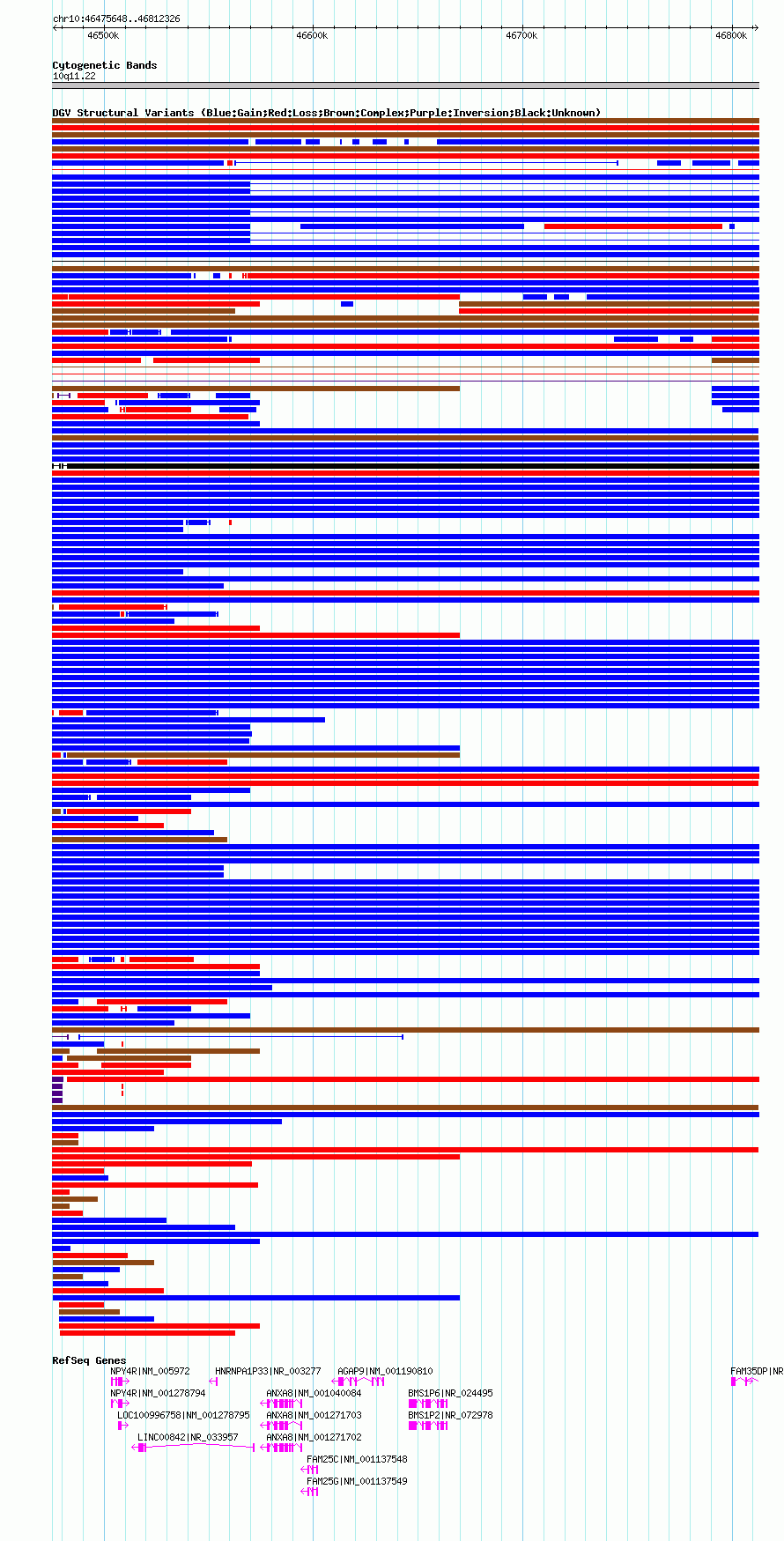 Variant DetailsVariant: nsv1042276| Internal ID | 19131495 | | Landmark | | | Location Information | | | Cytoband | 10q11.22 | | Allele length | | Assembly | Allele length | | hg19 | 336679 | | hg18 | 336679 |