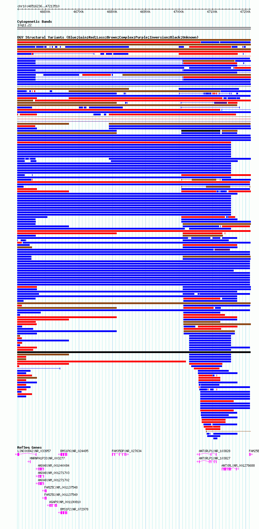 Variant DetailsVariant: nsv1042537| Internal ID | 19131756 | | Landmark | | | Location Information | | | Cytoband | 10q11.22 | | Allele length | | Assembly | Allele length | | hg19 | 647275 | | hg18 | 697275 |