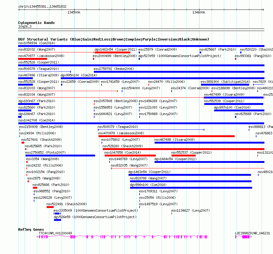Variant DetailsVariant: nsv1042708| Internal ID | 19131927 | | Landmark | | | Location Information | | | Cytoband | 10q26.3 | | Allele length | | Assembly | Allele length | | hg38 | 196452 | | hg19 | 196452 | | hg18 | 196452 |