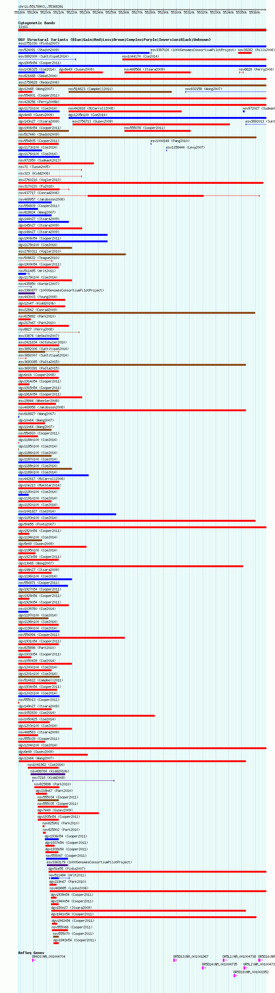 Variant DetailsVariant: nsv1042841| Internal ID | 19132060 | | Landmark | | | Location Information | | | Cytoband | 11q11 | | Allele length | | Assembly | Allele length | | hg38 | 189489 | | hg19 | 189489 | | hg18 | 189489 |
