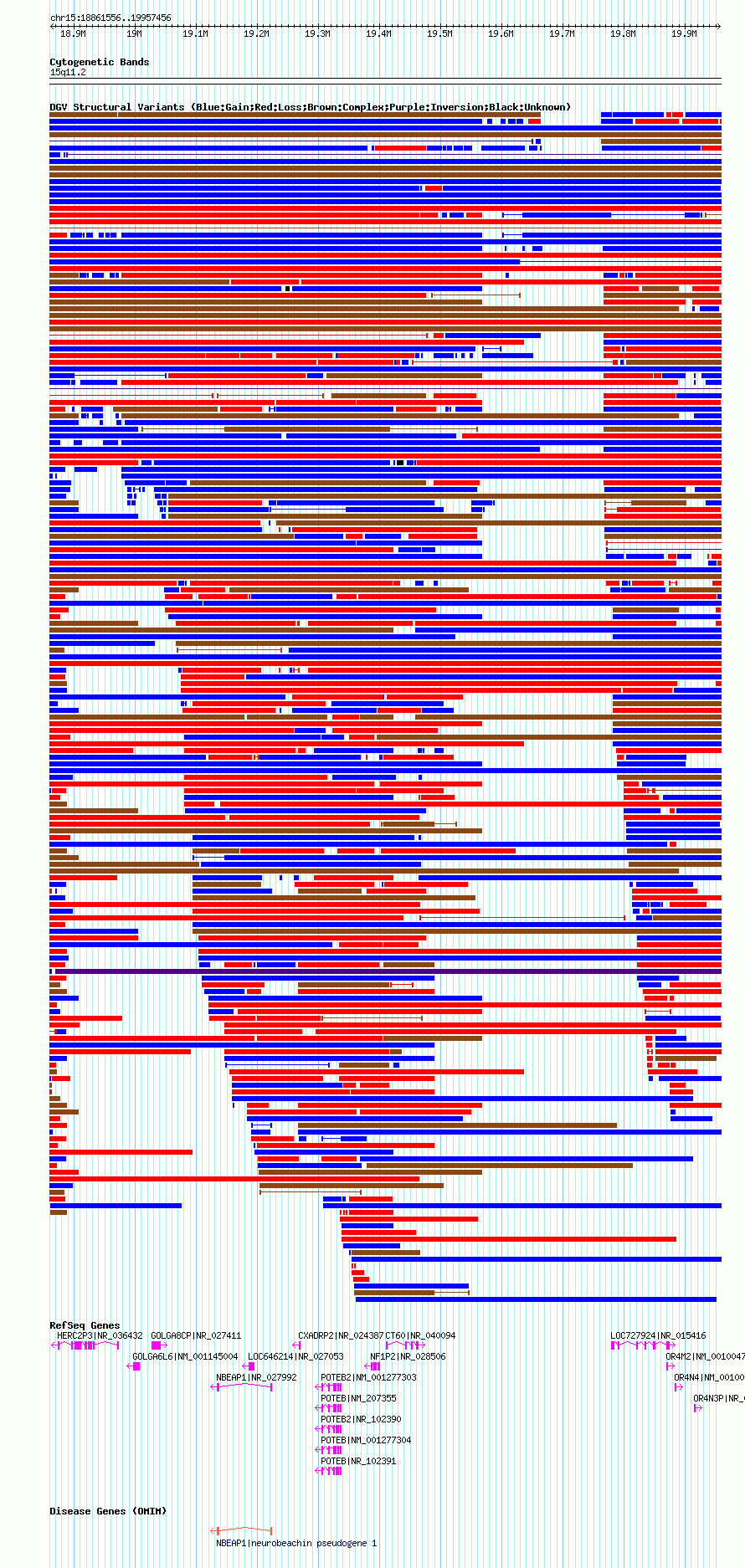 Variant DetailsVariant: nsv1042842| Internal ID | 19132061 | | Landmark | | | Location Information | | | Cytoband | 15q11.1 | | Allele length | | Assembly | Allele length | | hg38 | 1771853 | | hg19 | 1854551 | | hg18 | 1095901 |