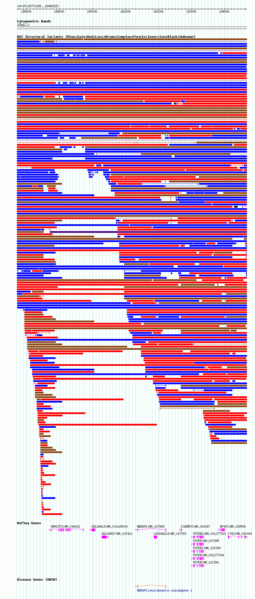 Variant DetailsVariant: nsv1042881| Internal ID | 19132100 | | Landmark | | | Location Information | | | Cytoband | 15q11.1 | | Allele length | | Assembly | Allele length | | hg38 | 690307 | | hg19 | 690383 | | hg18 | 695028 |